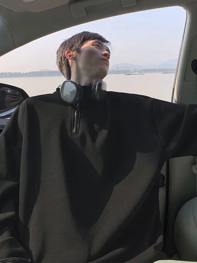 2023 neue Koreanische Mode Halb-reißverschluss Sweatshirts Für Männer Frühling Stehkragen Pullover Hoodies Y2K Vintage Solide trainingsanzug Hombre