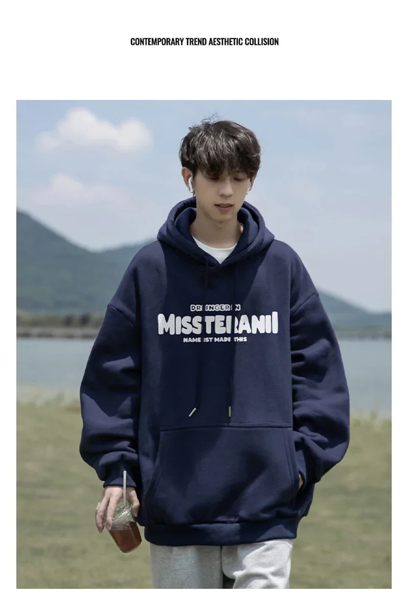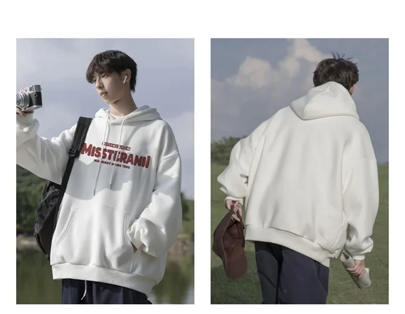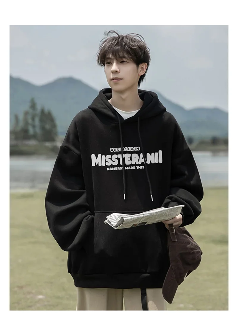 2024 Neu im Vintage-Stil, lässig, Kapuzenpullover für Herren, mit Buchstaben bedruckt, lockere Passform, Kapuzenpullover, Herbst, Y2K, Streetwear, modischer Trainingsanzug