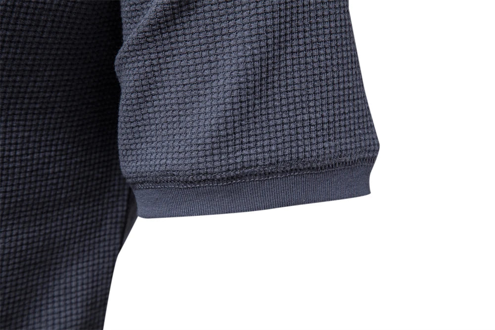 - Kurzarm und Henley-Kragen: Die kurzen Ärmel und der modische Kragen verleihen ihm einen modernen Look und sorgen für zusätzliche Bewegungsfreiheit.