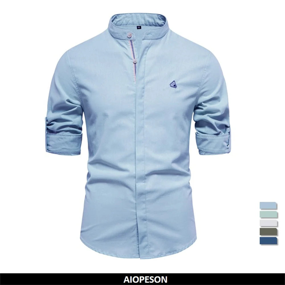 Herren Hemden aus 100% Baumwolle mit Stehkragen für die Freizeit