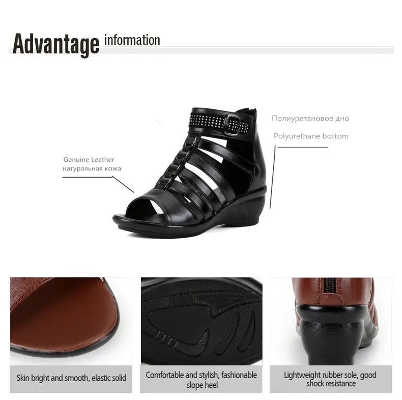 AIYUQI frauen sandalen 2025, sommer neue frauen echtes leder sandalen große größe 41 42 43 strass Römischen sandalen damen mutter