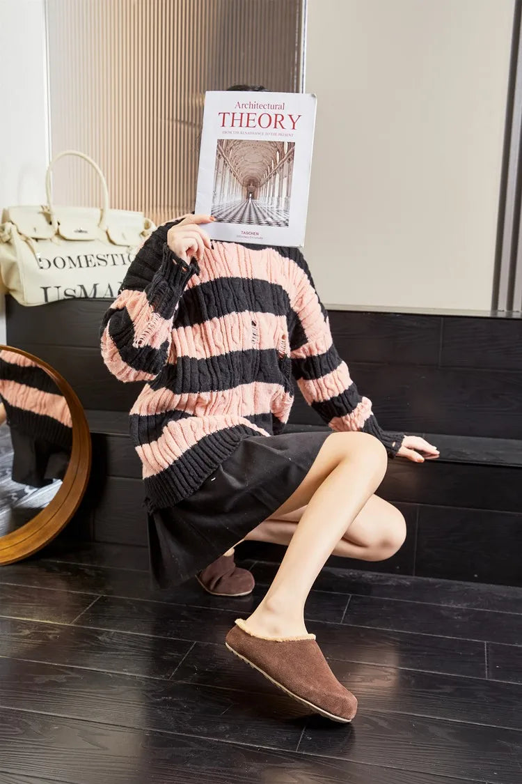 AIYUQI Hausschuhe Weiblichen Echten Leder 2024 Neue Slip-on Winter Hausschuhe Damen Casual Fleece Trend Hausschuhe Schuhe Frauen
