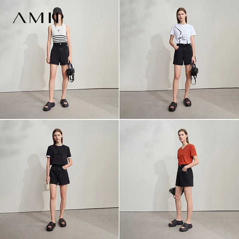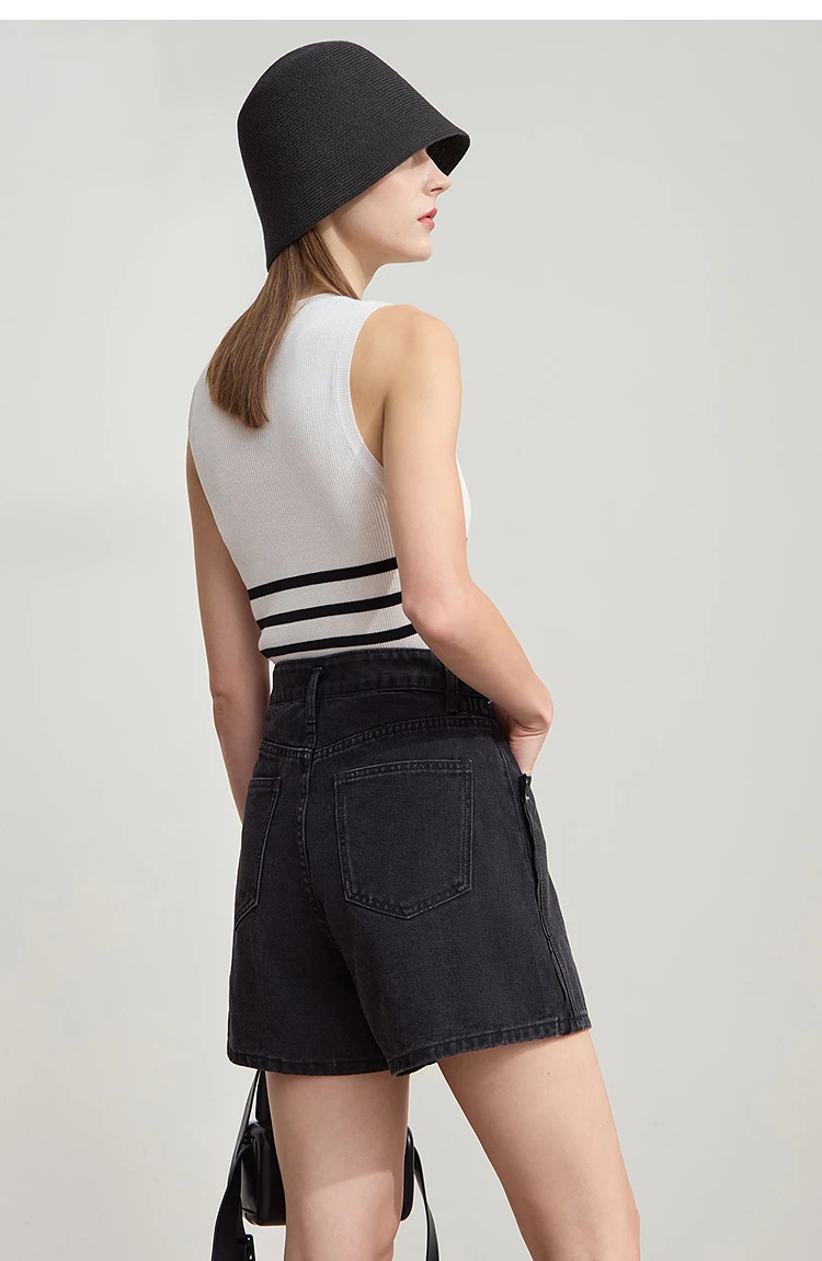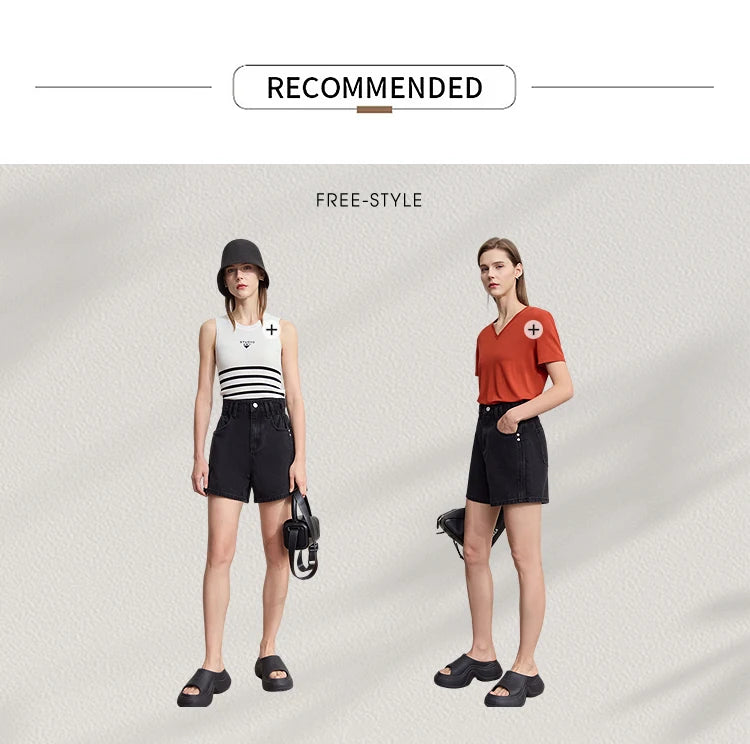 Damen Shorts Baumwoll-Denim Lässig Locker Gerade Vintage Modische Taschenjeans