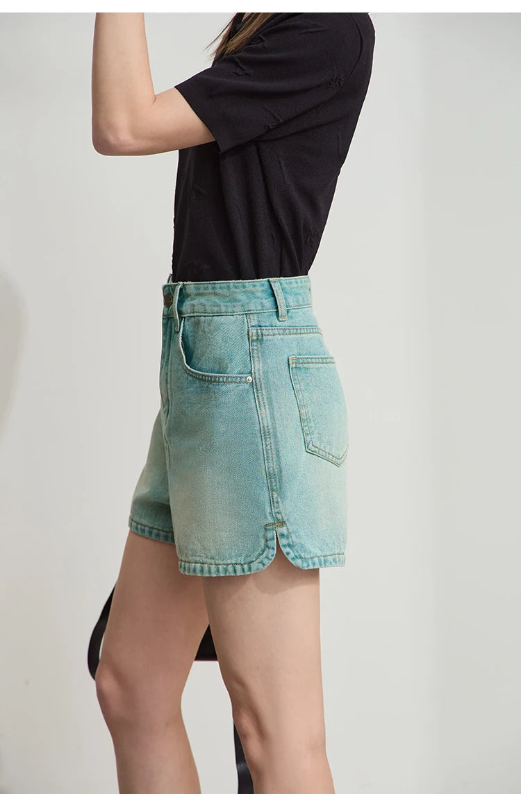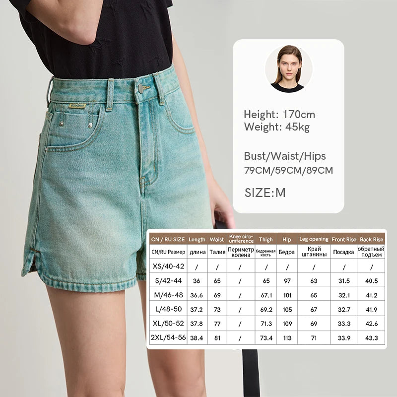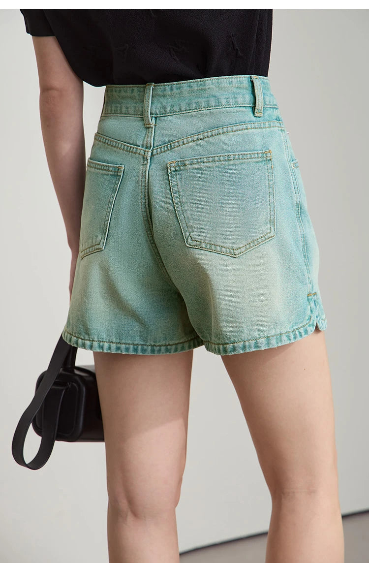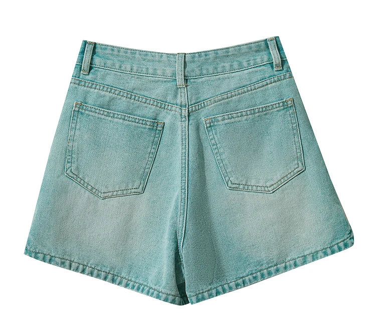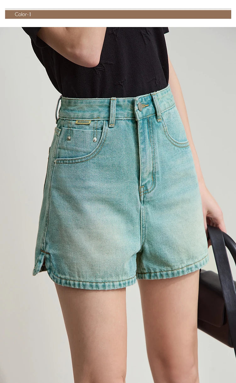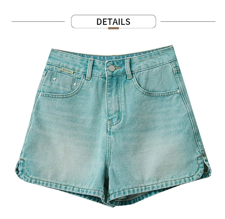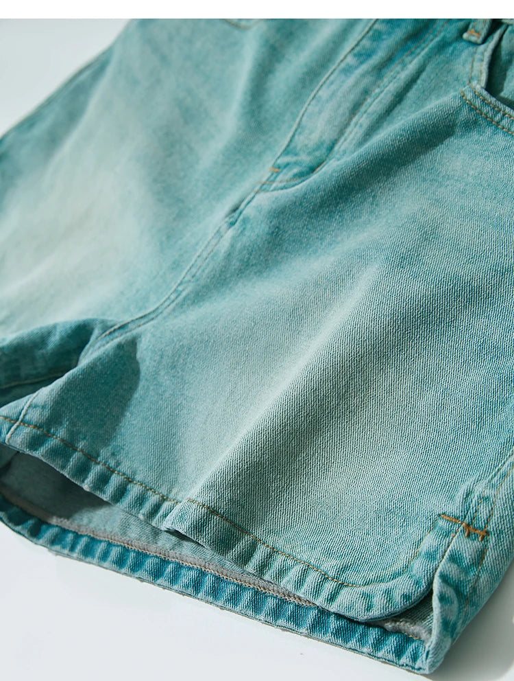 Damen Shorts im alten Retro-Stil aus gewaschenem Baumwoll-Denim mit Taschen