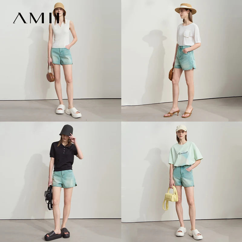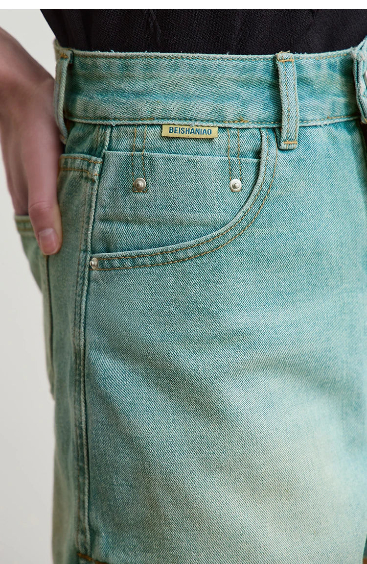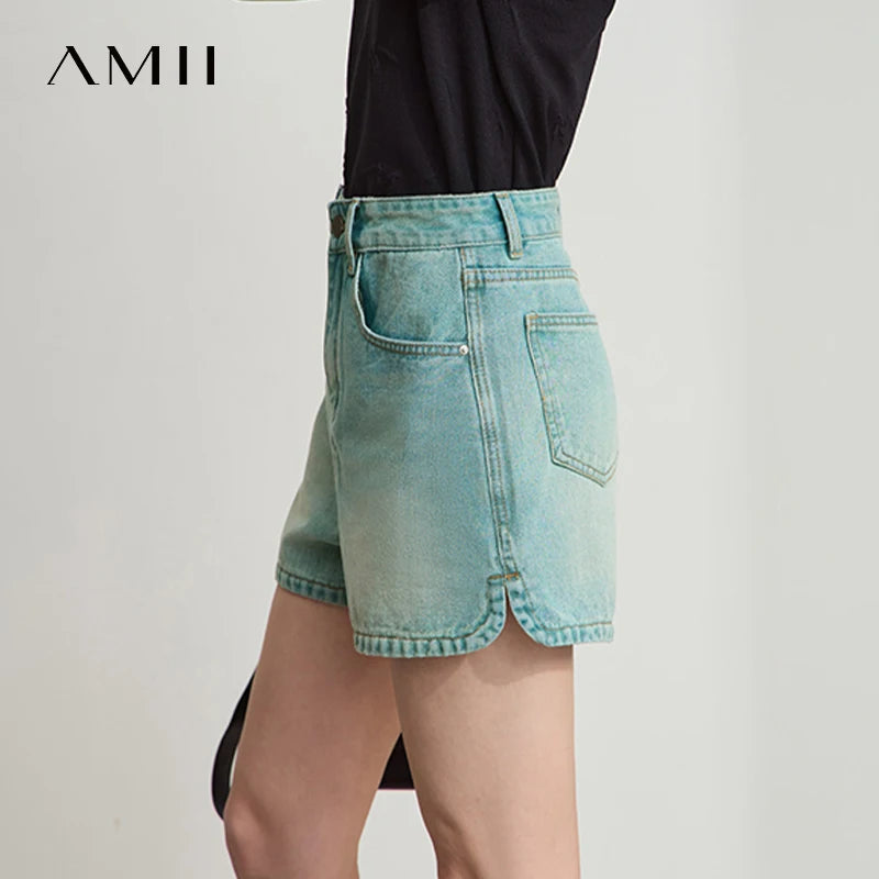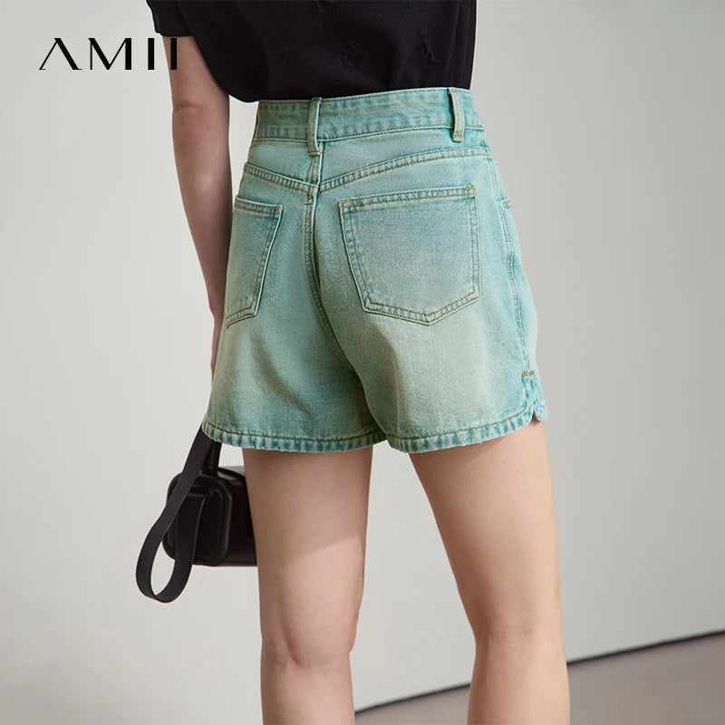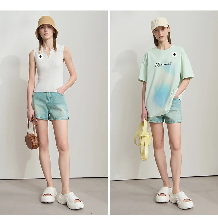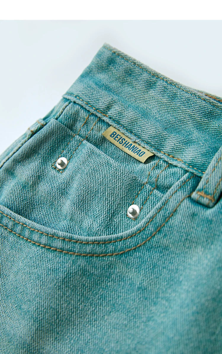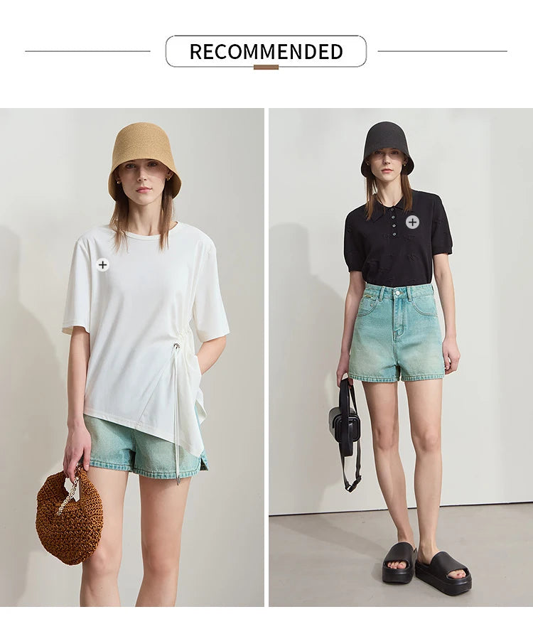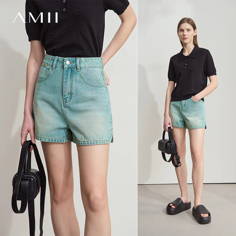 Damen Shorts im alten Retro-Stil aus gewaschenem Baumwoll-Denim mit Taschen