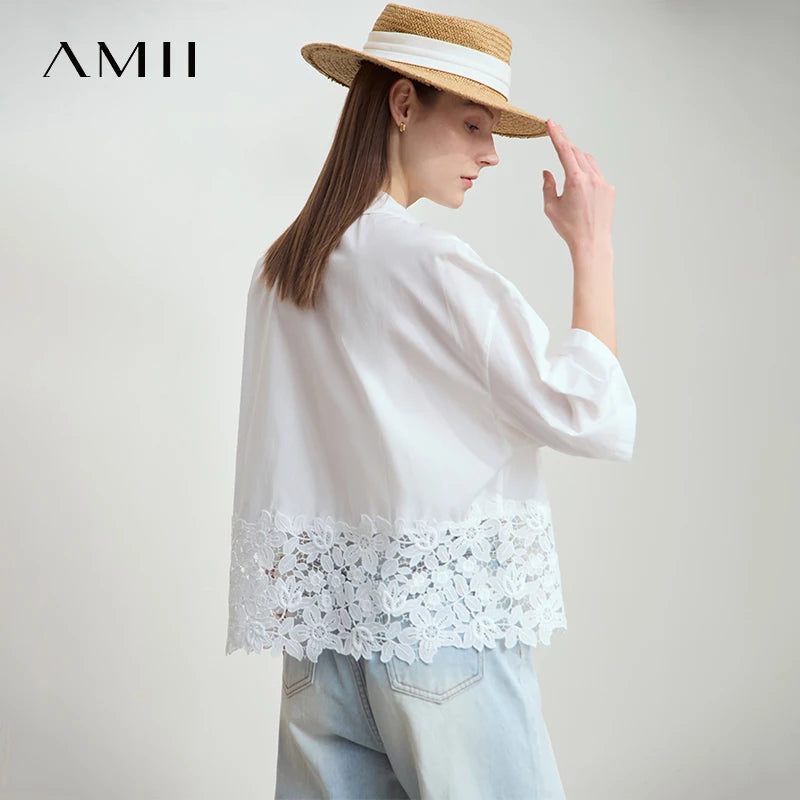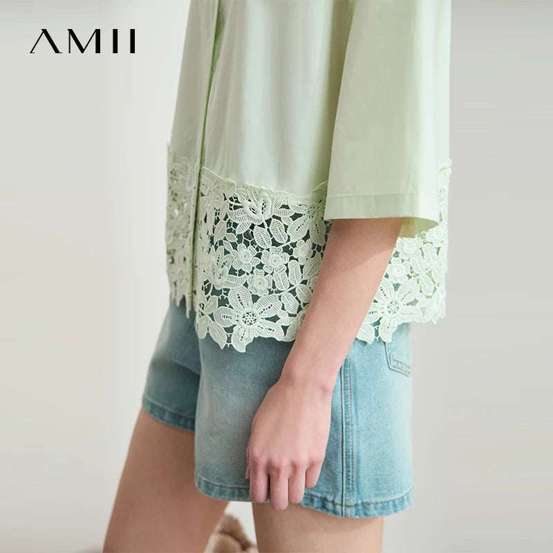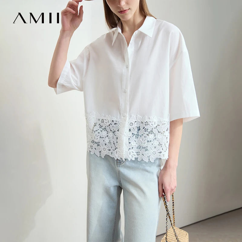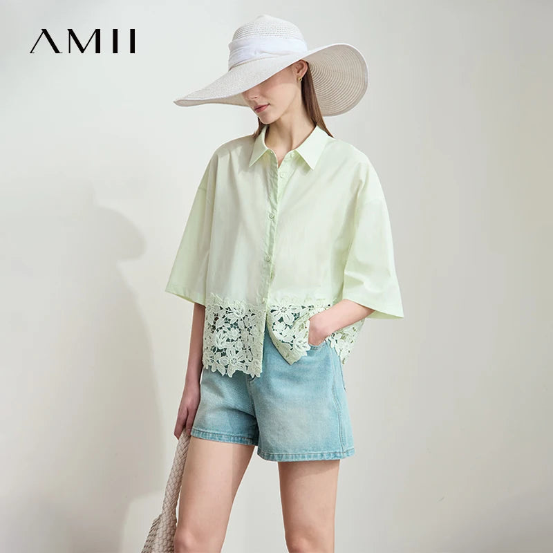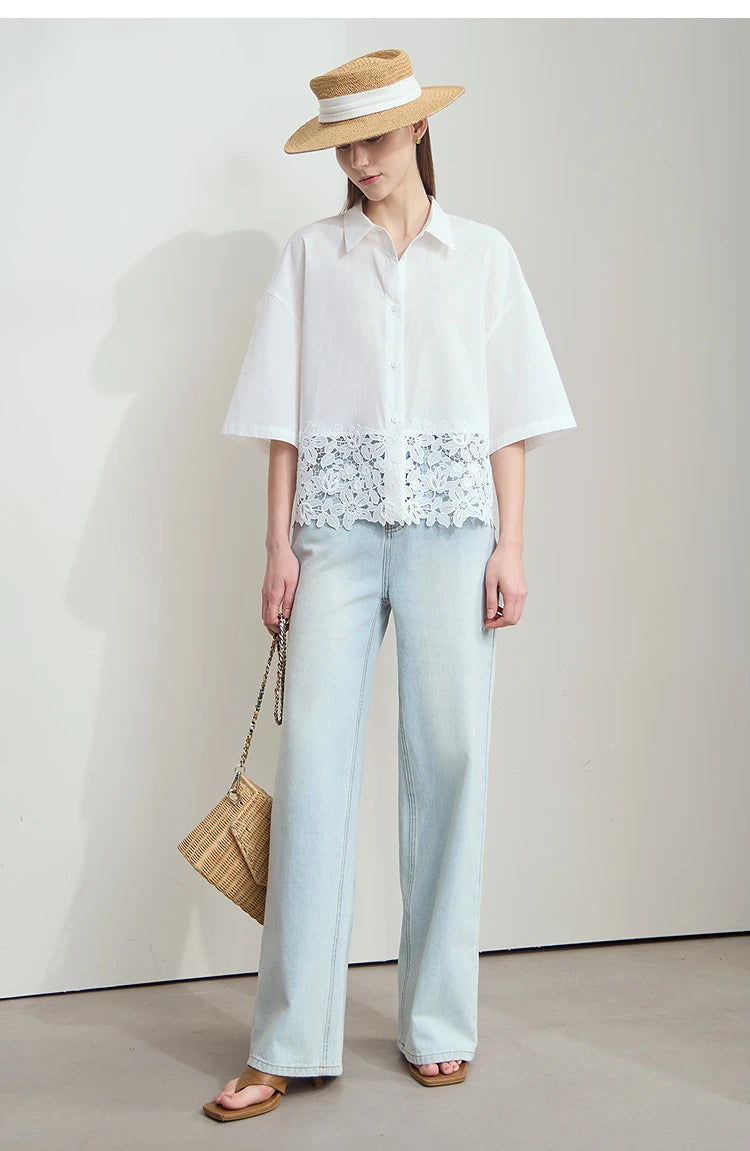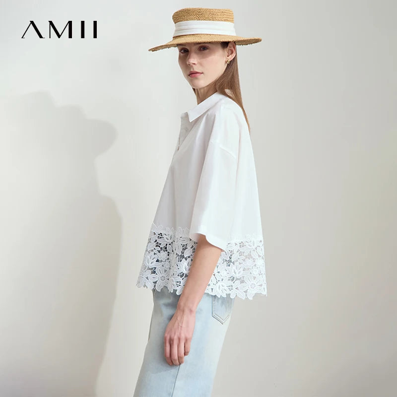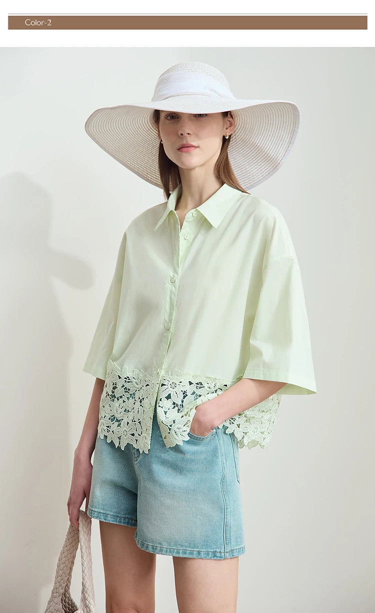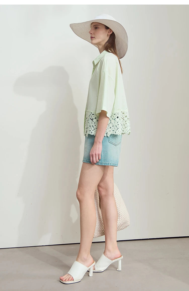 Damen Kurzarm Shirt mit drehbarem Kragen und solider Aushöhlung