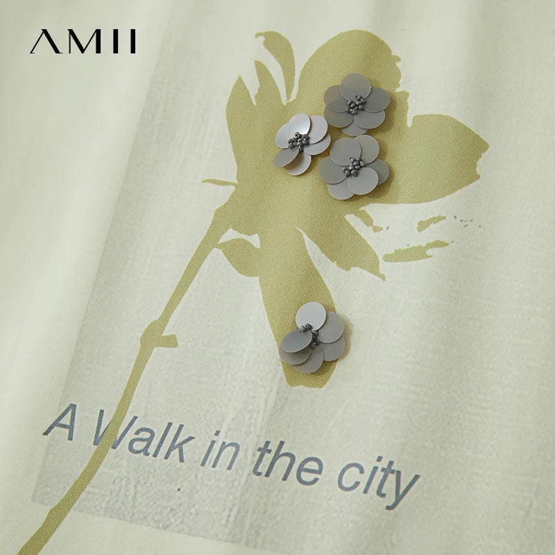 Damen T-Shirt mit minimalistischem O-Ausschnitt und Pailletten-Verzierung