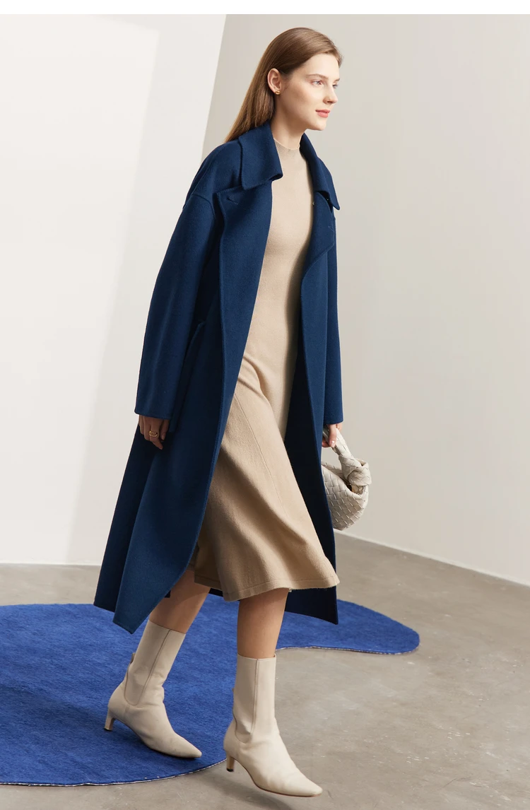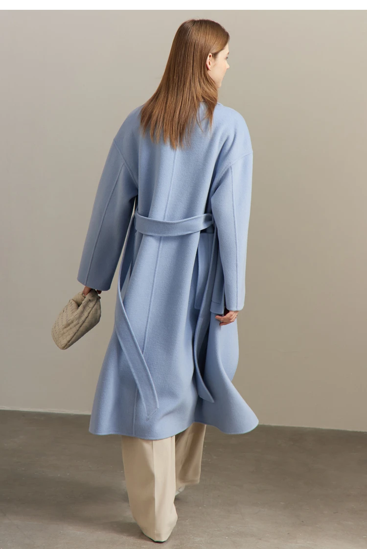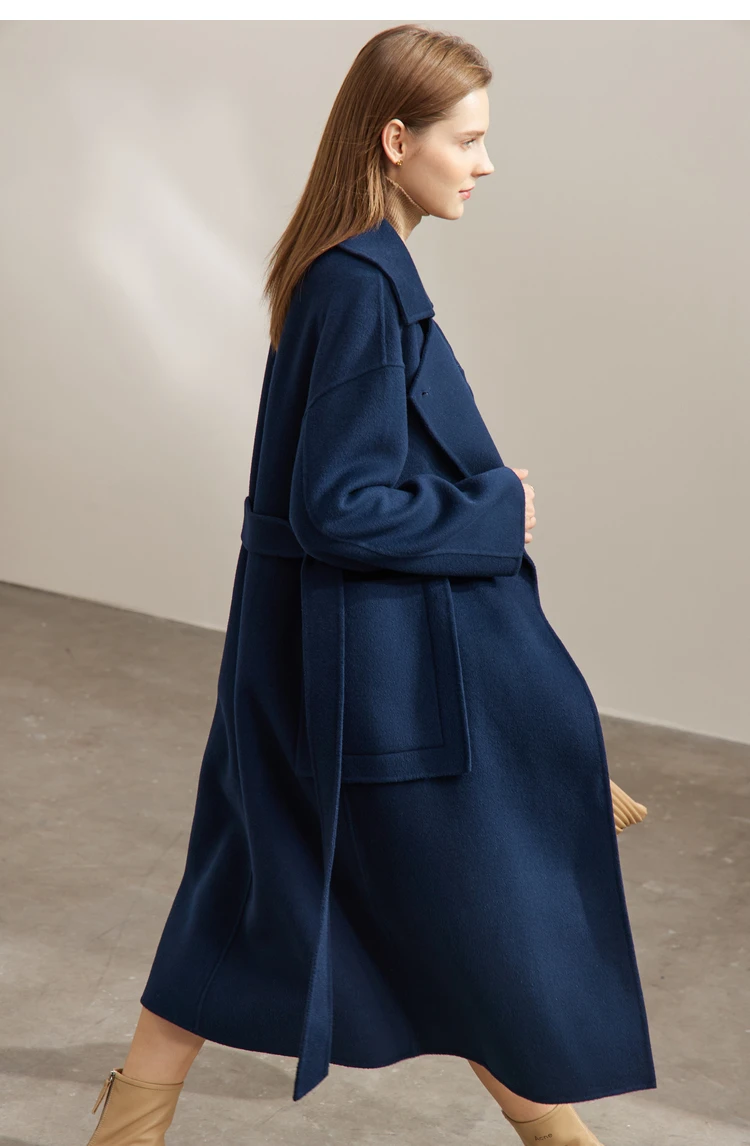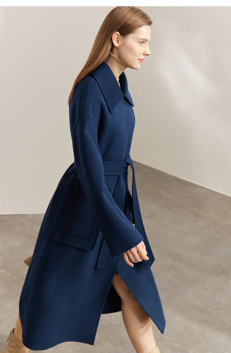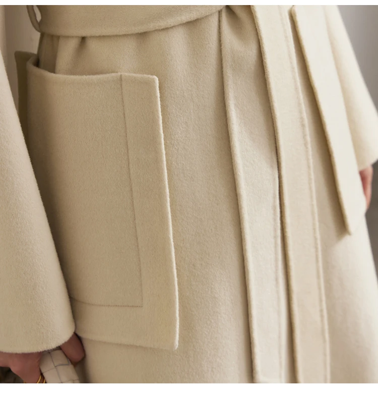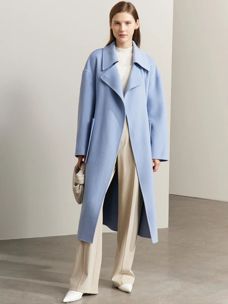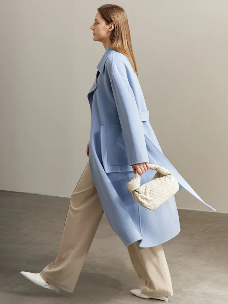 Frauen Mantel aus 100 Prozent Wolle im eleganten Koreanischen Stil mit Gürtel