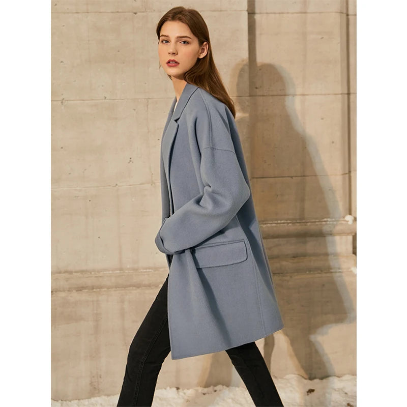 Damen Wollmantel im Minimalismus-Stil für den eleganten Wintereinsatz