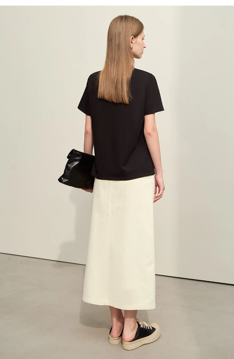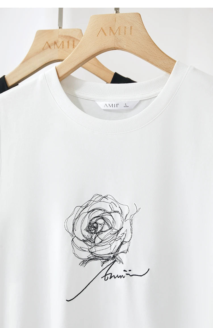 Damen Kurzarm-T-Shirt im minimalistischen Stil mit O-Ausschnitt und Stickerei