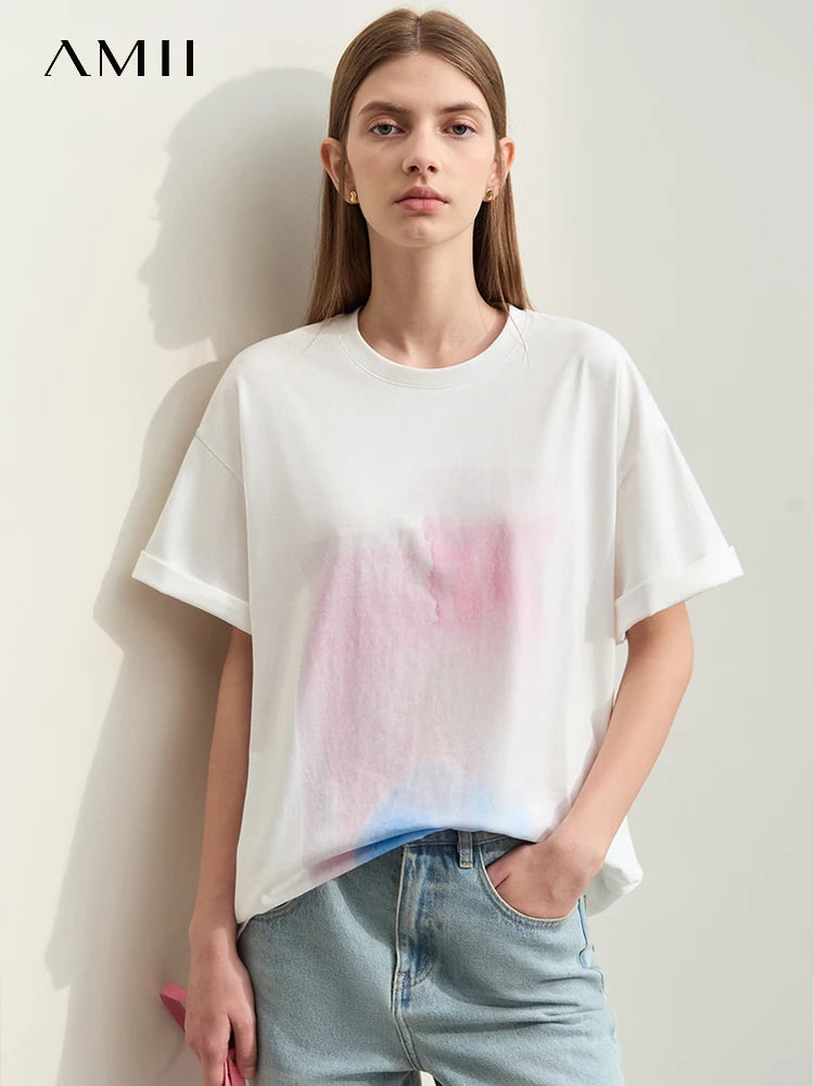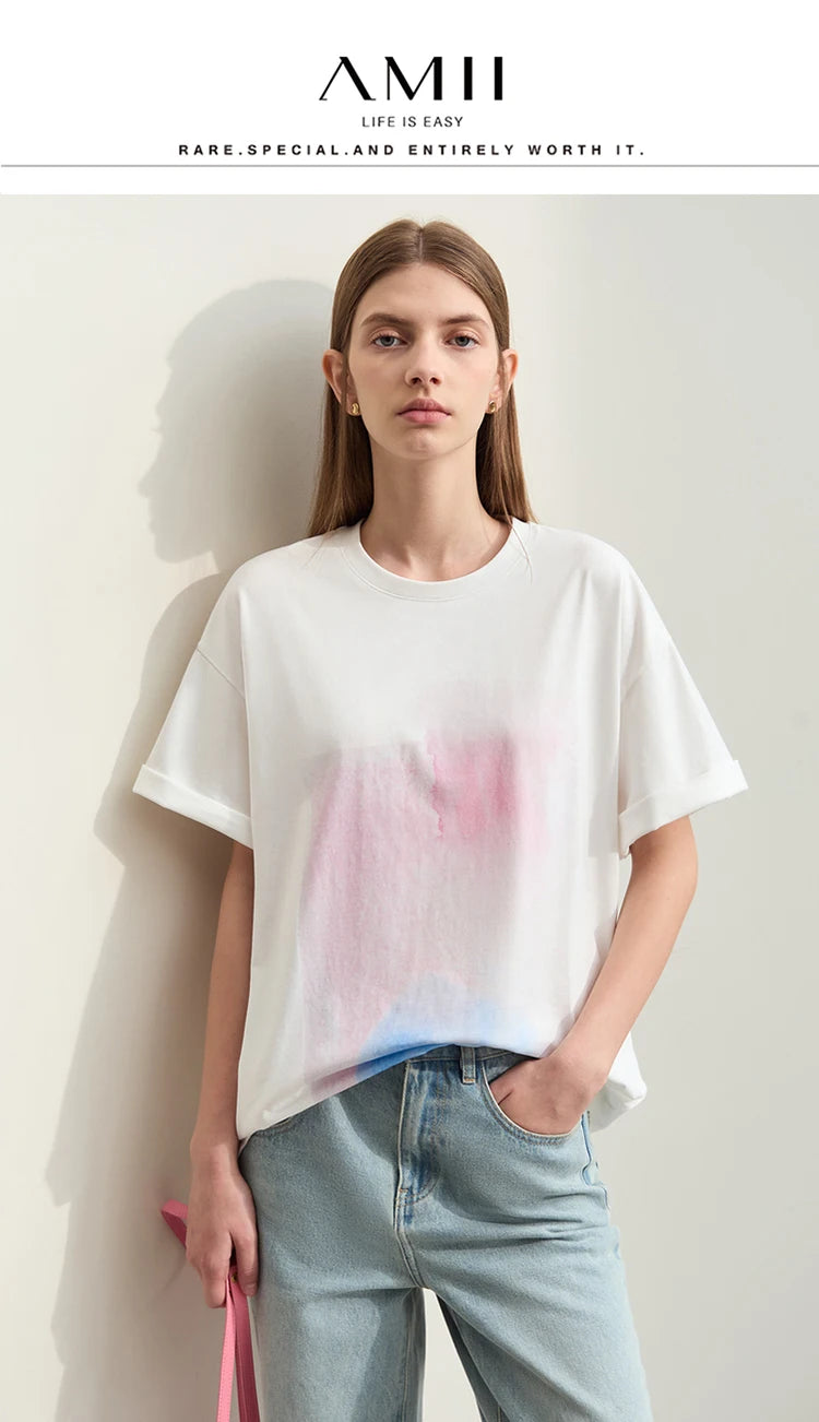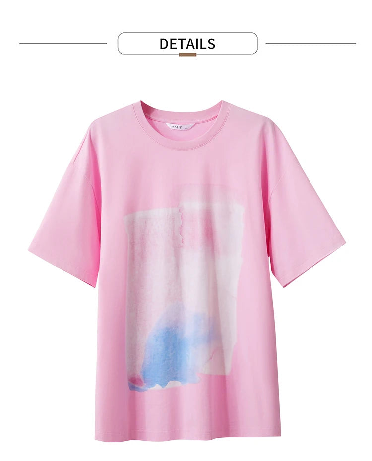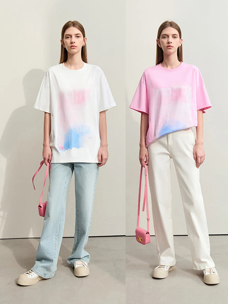Damen T-Shirts im Minimalismus-Stil mit abstraktem Druck aus Baumwolle