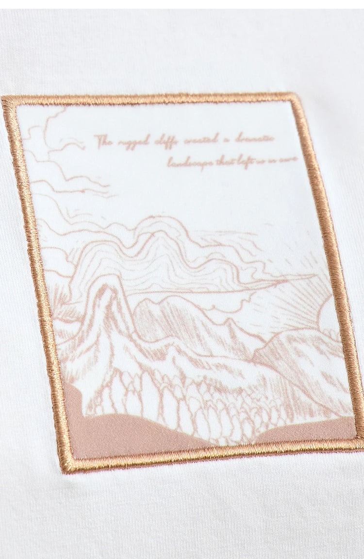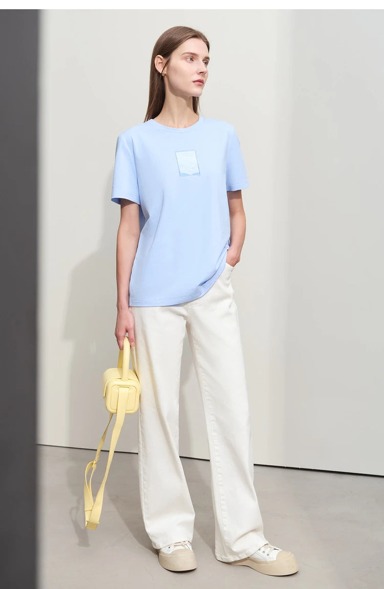 Damen T-Shirt im minimalistischen Stil mit O-Ausschnitt und lässiger Stickerei