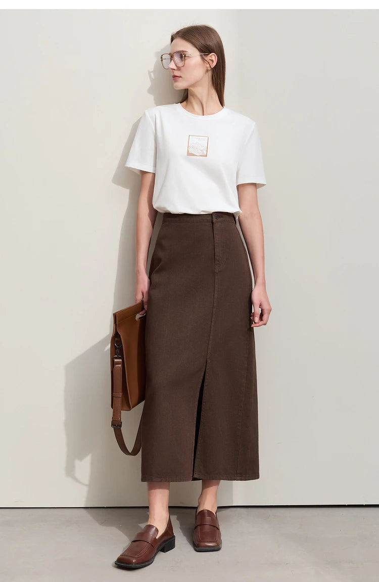 Damen T-Shirt aus Baumwolle mit lässigem O-Ausschnitt und modischer Stickerei
