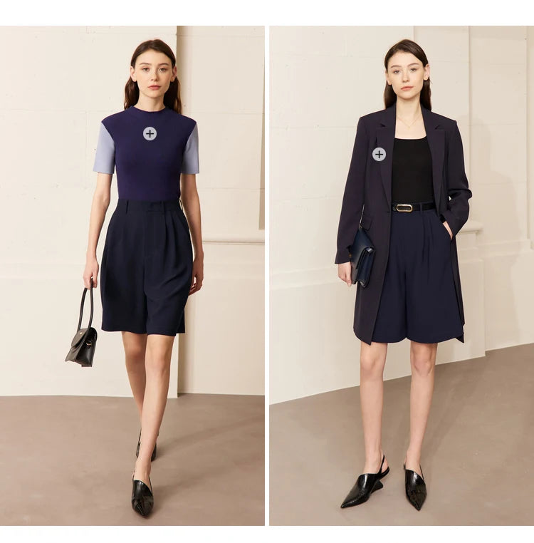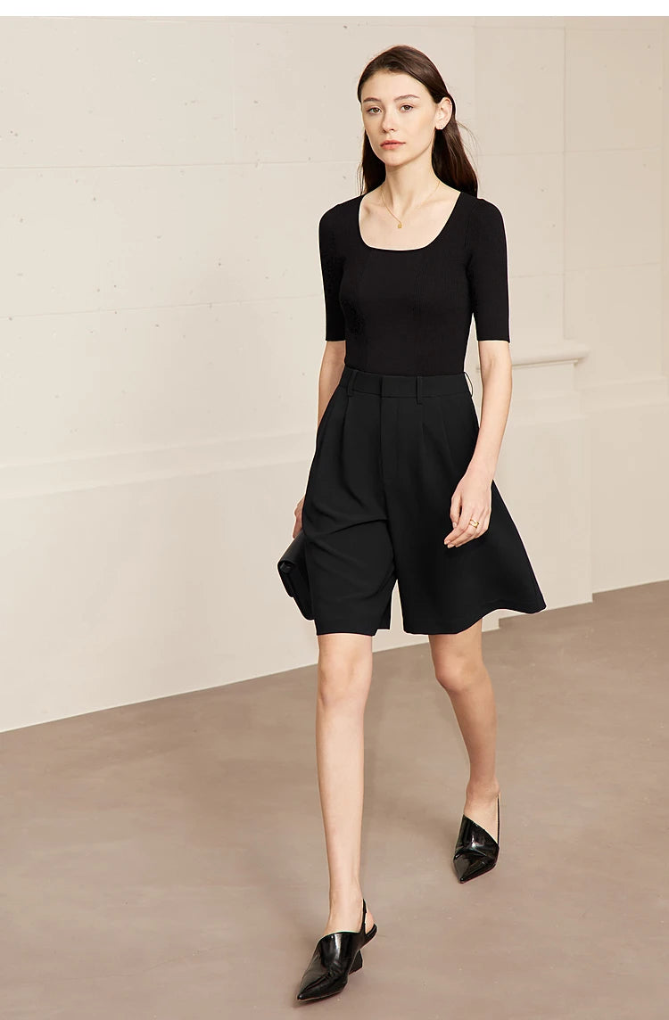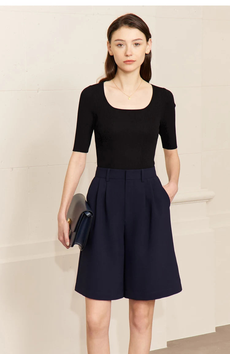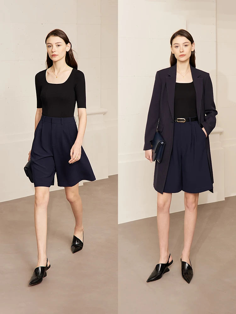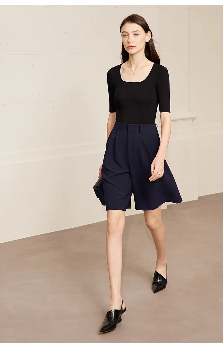 Damen Shorts im minimalistischen Stil für das Büro mit weitem Bein
