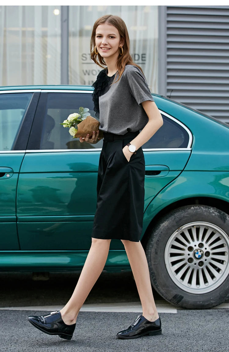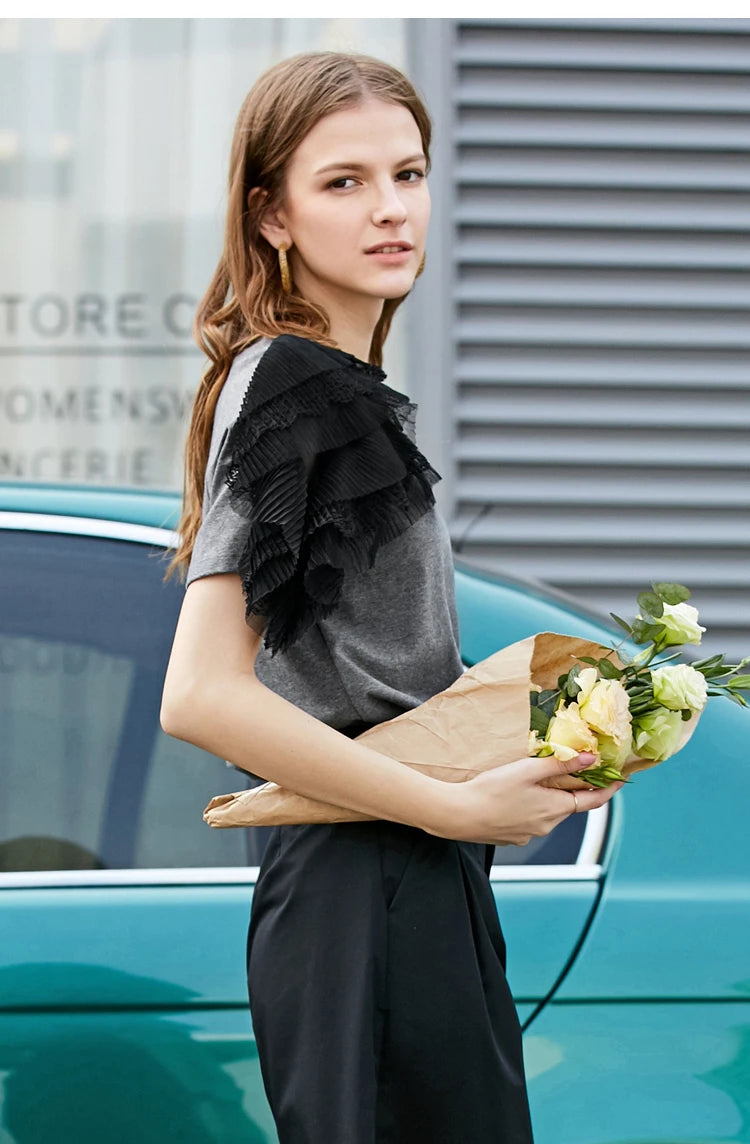Damen T-Shirt aus mercerisierter Baumwolle im minimalistischen Patchwork-Stil mit Spitze