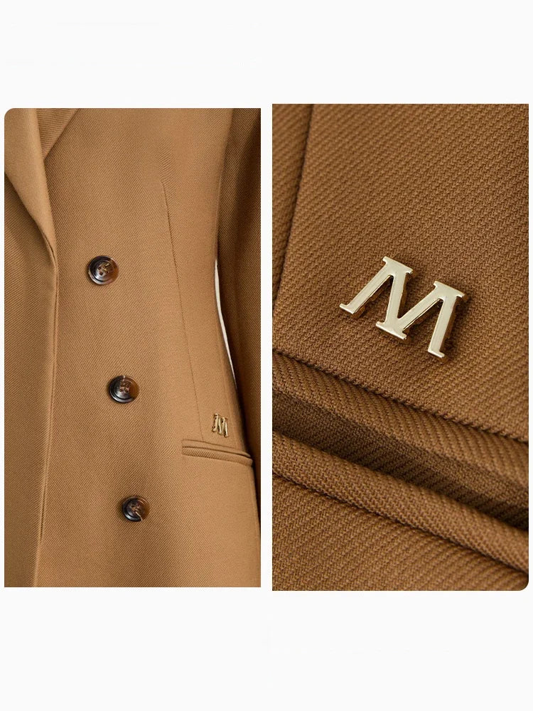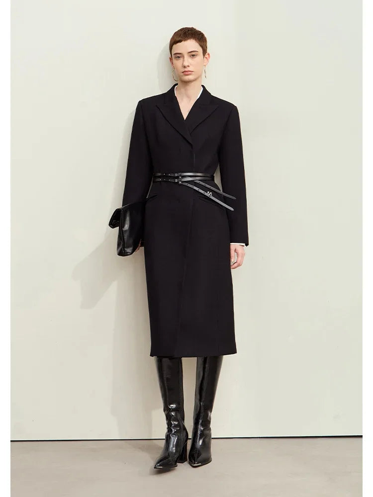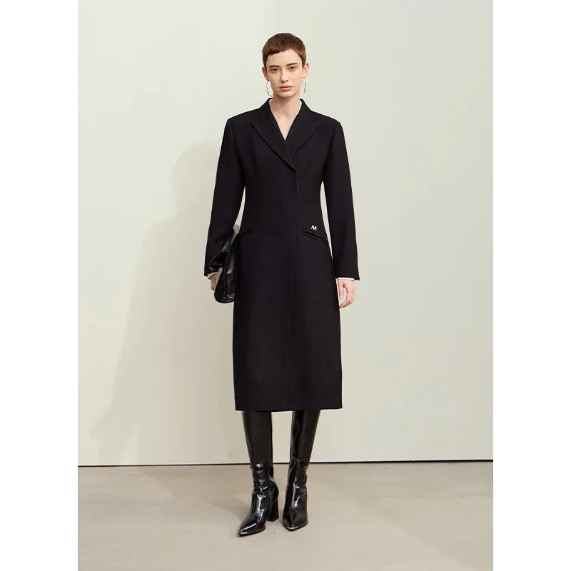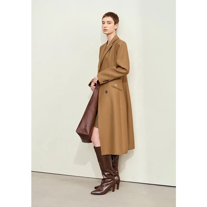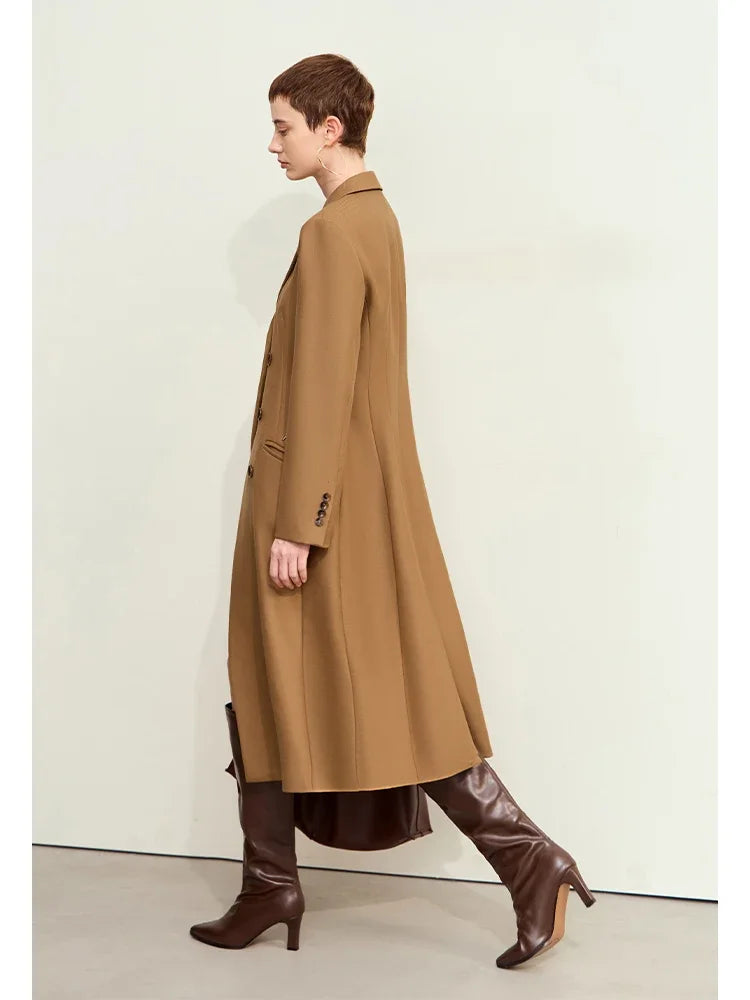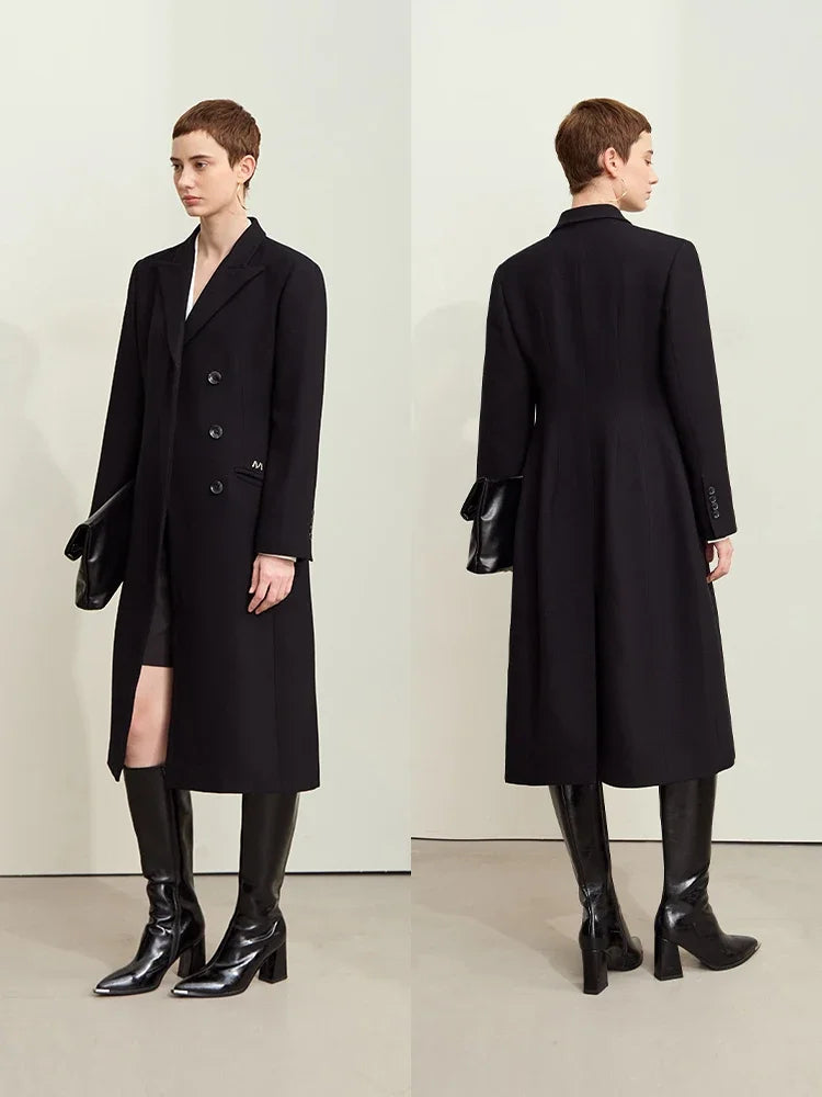 Damen Lange Mäntel aus Schafwolle mit Reverskragen und Metall-Dekorierung
