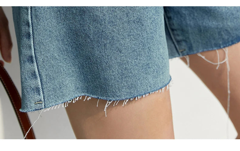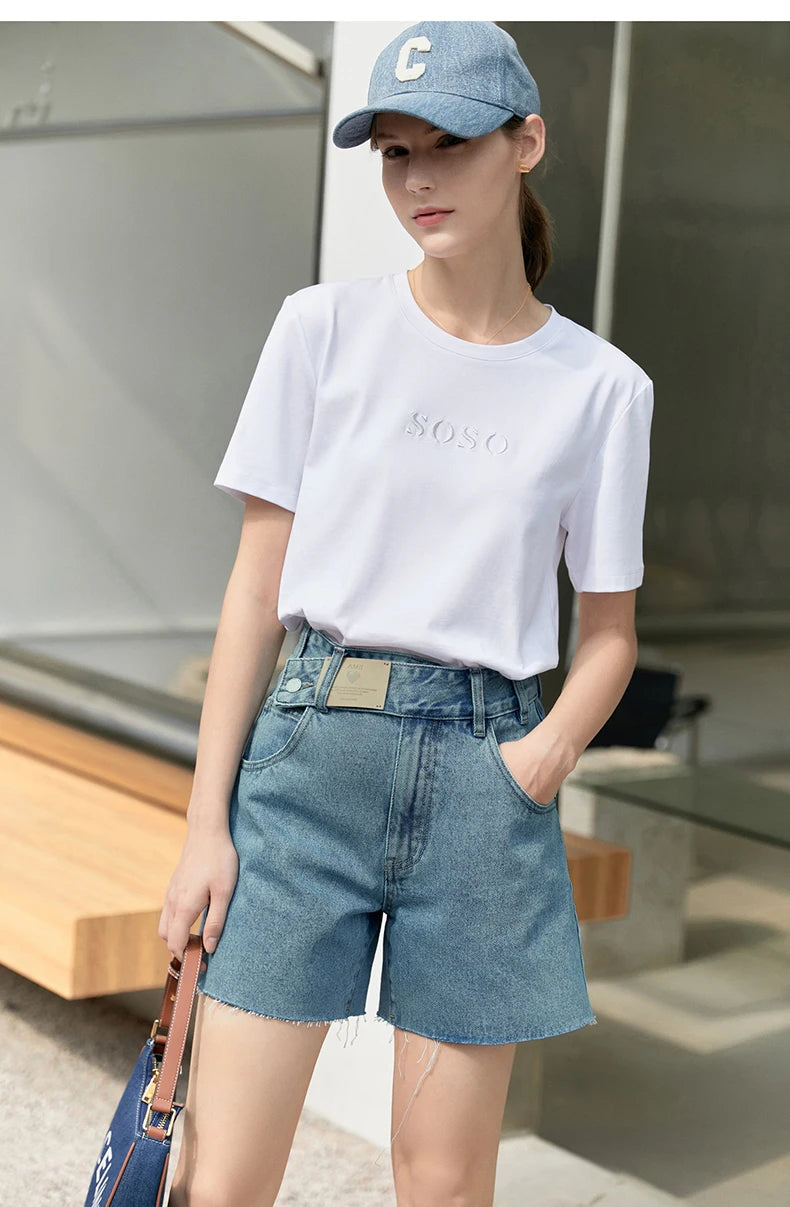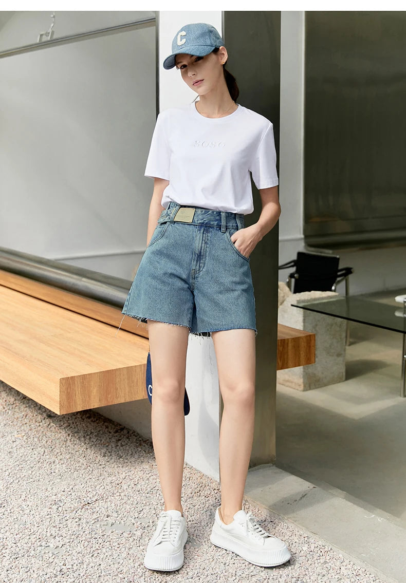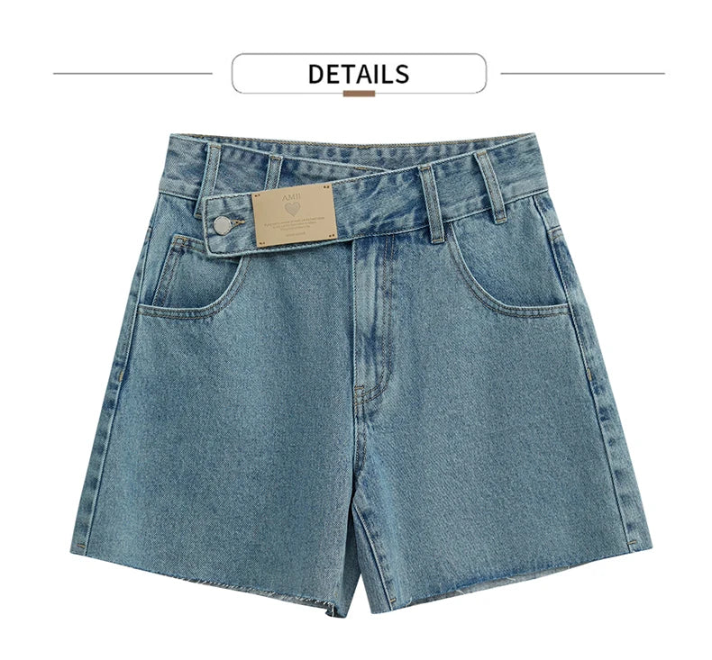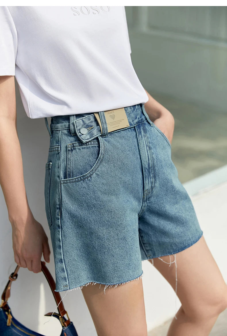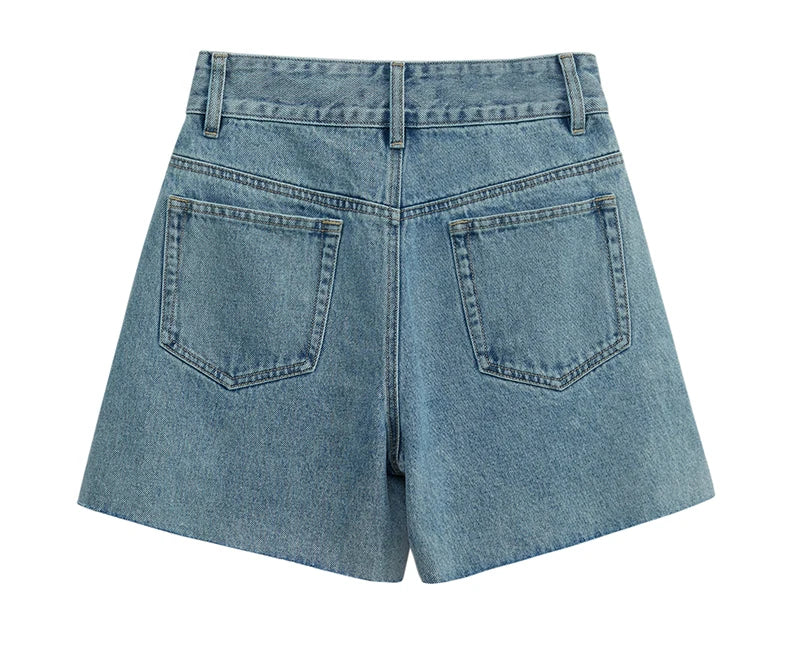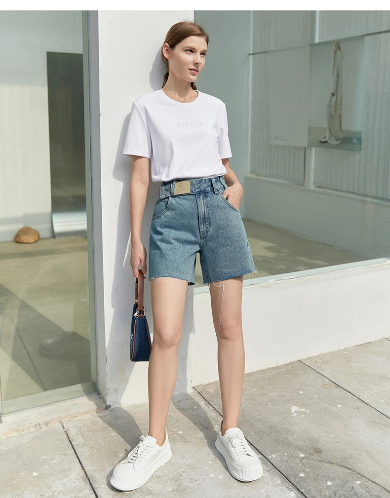 Damen Jeans Shorts im minimalistischen Design mit Taschen und hoher Taille