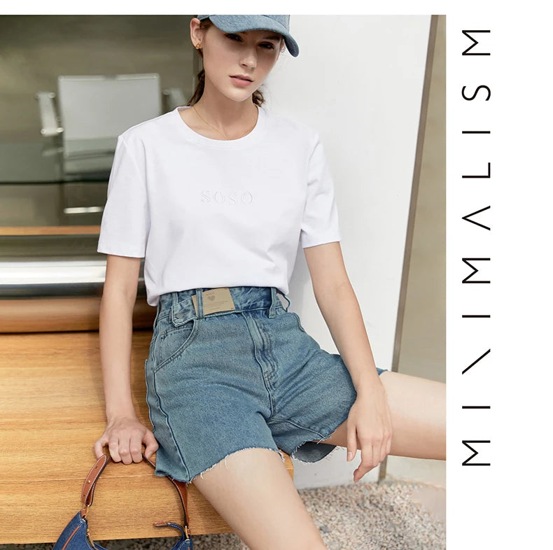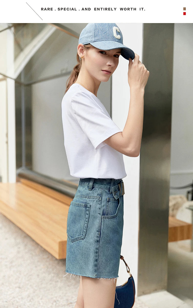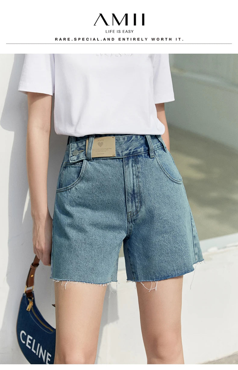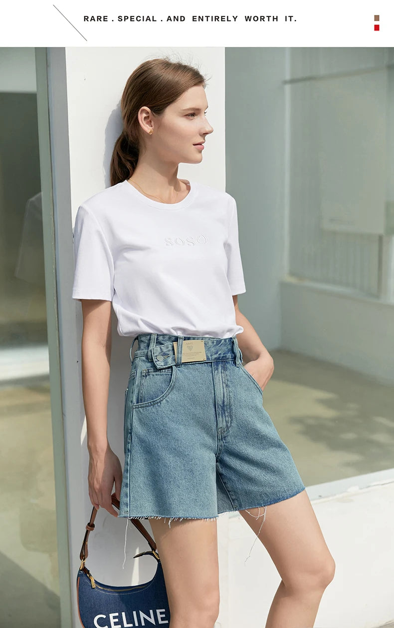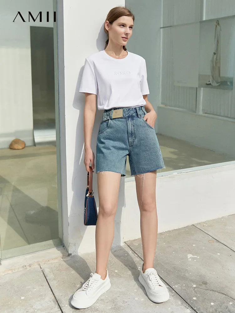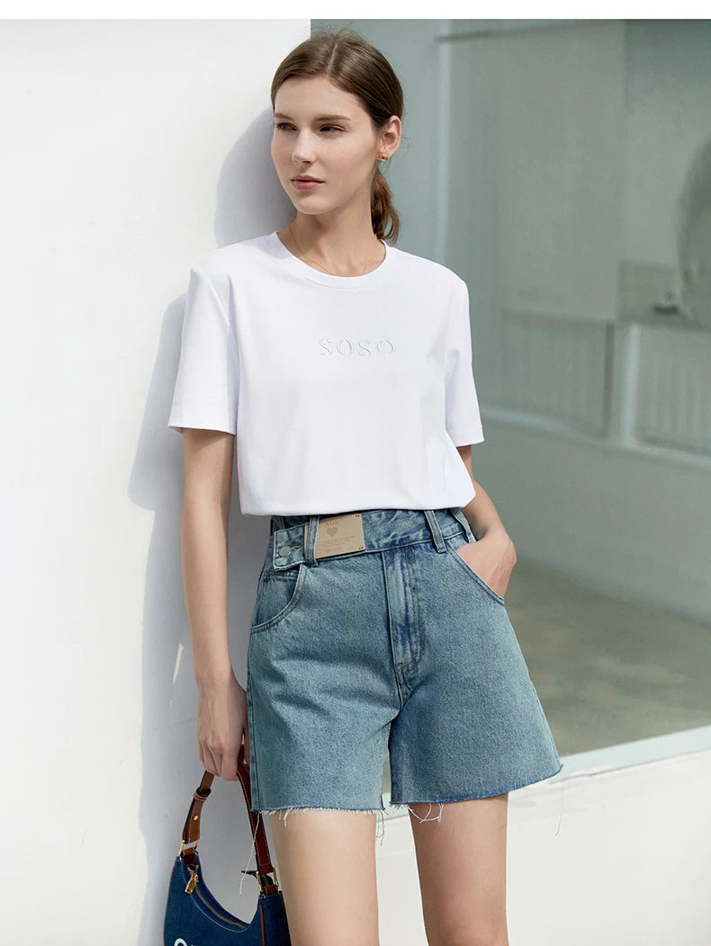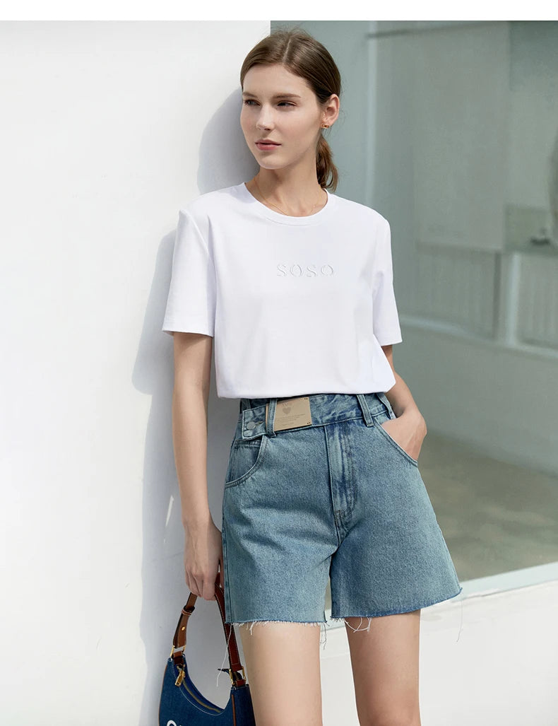 Damen Jeans Shorts im minimalistischen Design mit Taschen und hoher Taille
