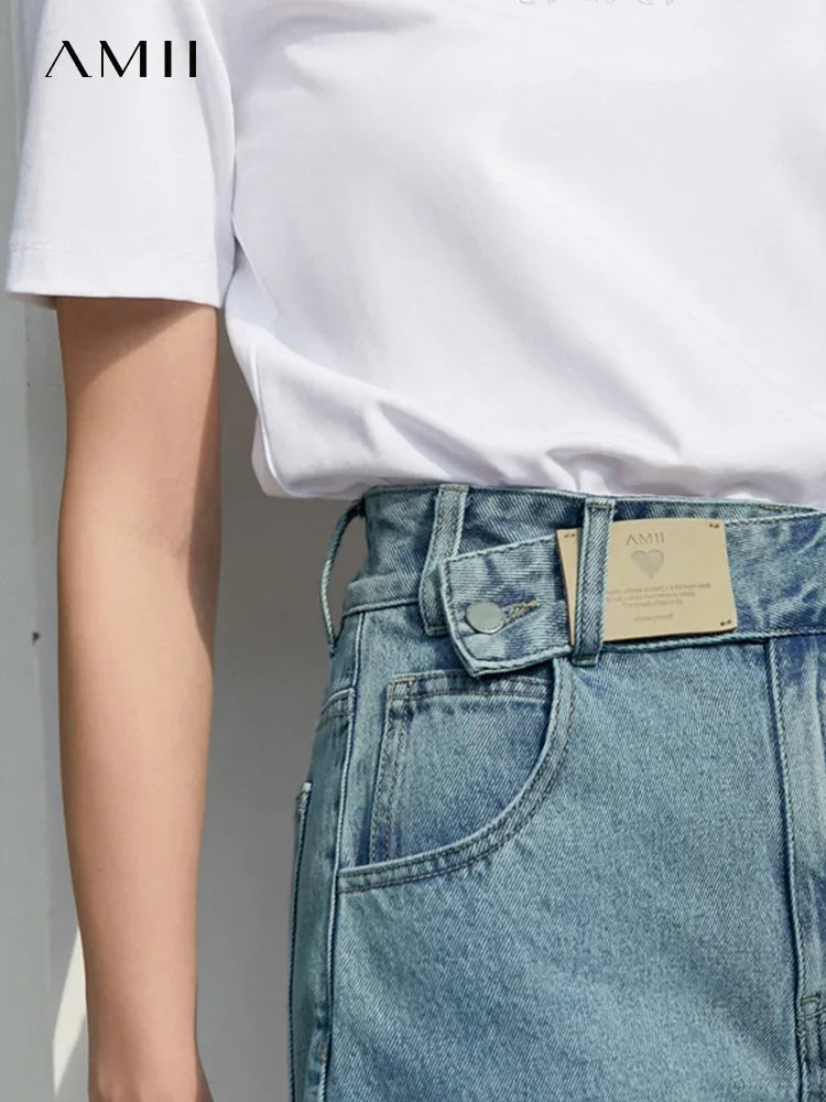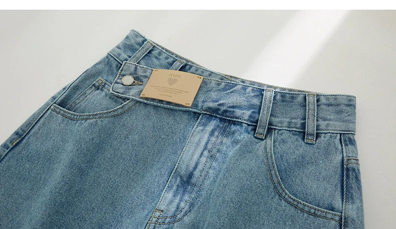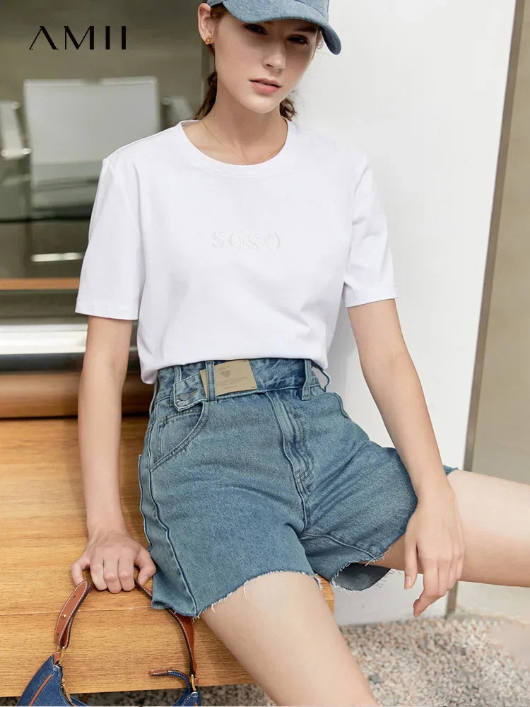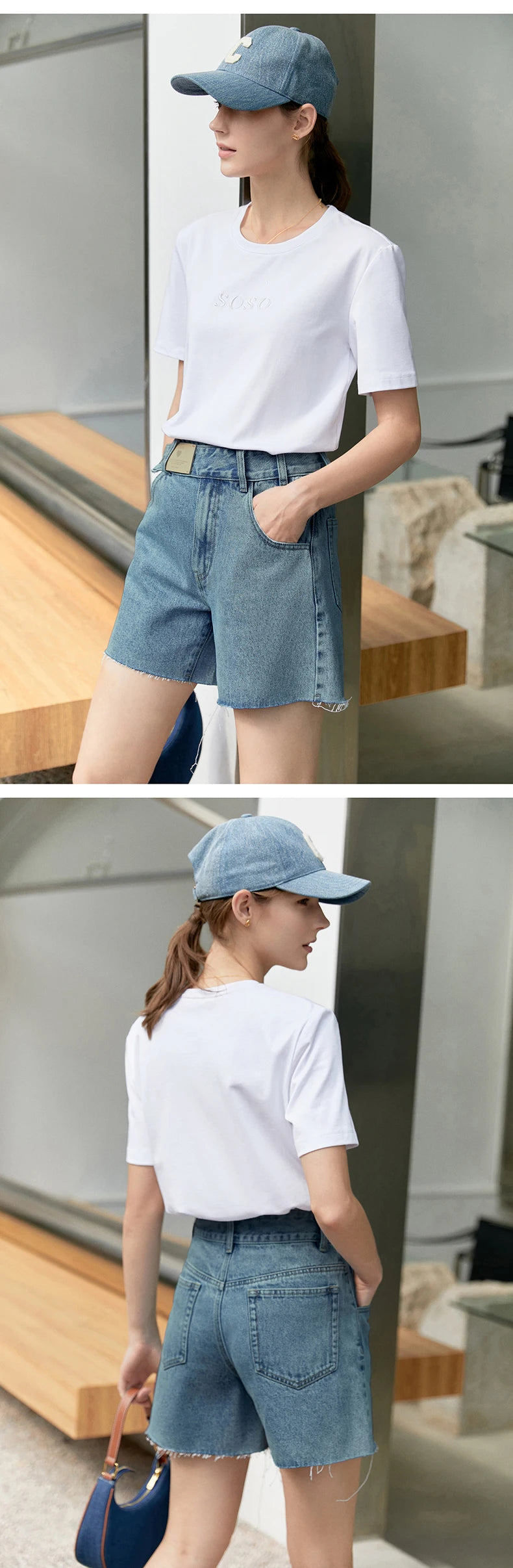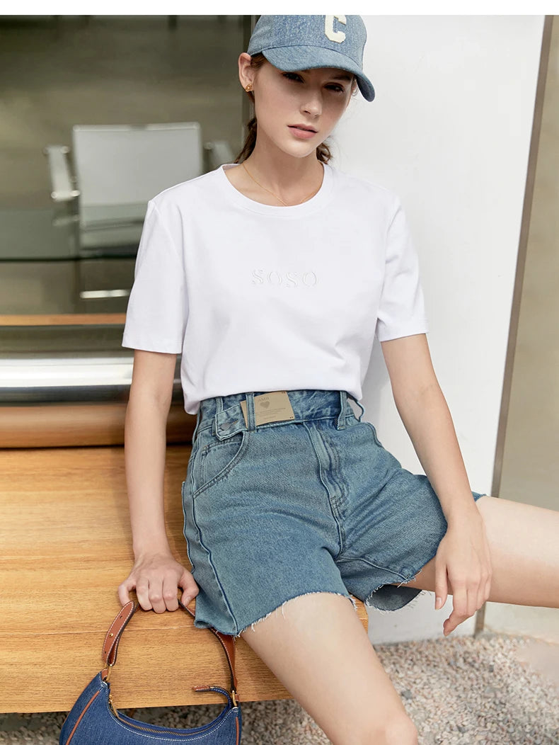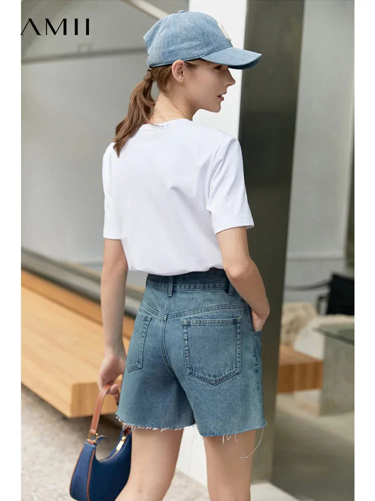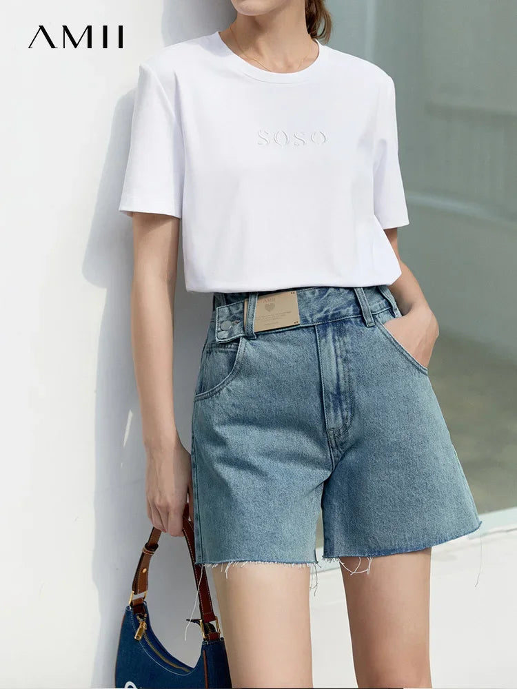 Damen Jeans Shorts im minimalistischen Design mit Taschen und hoher Taille