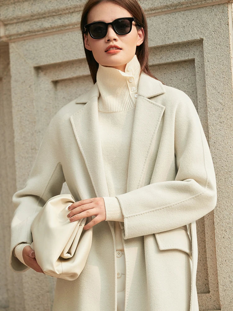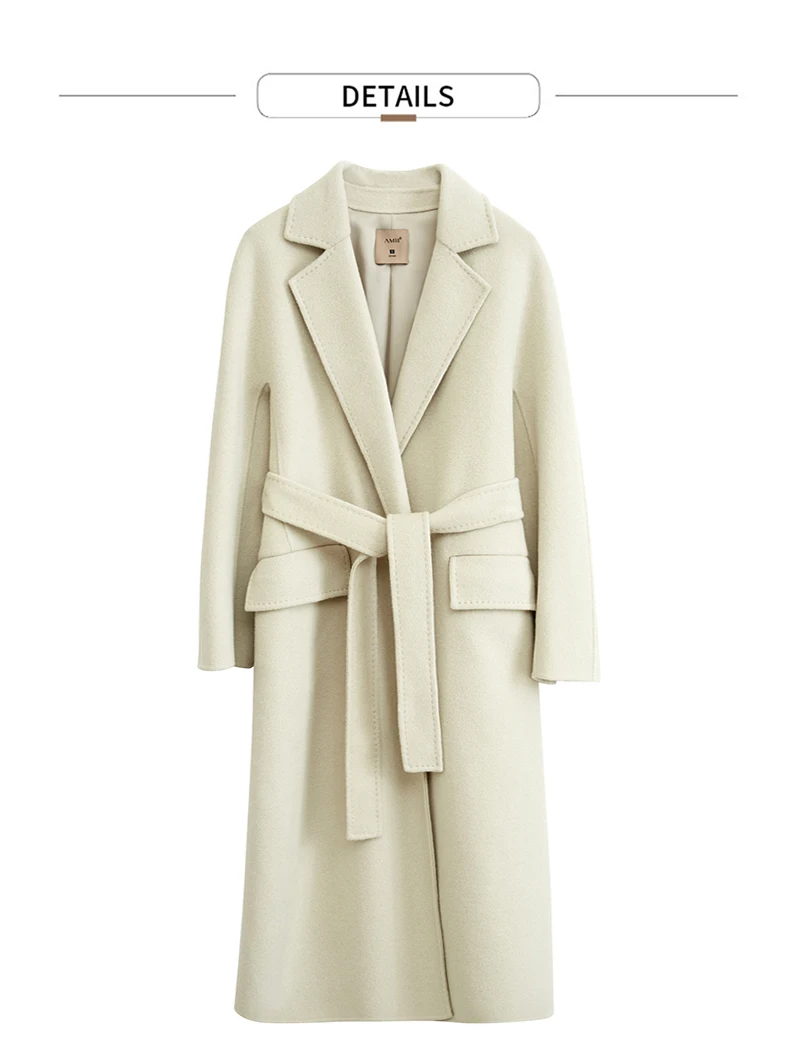 Damen Wollmantel aus 100 Prozent Wolle mit eleganter doppelter Seite und Taschen