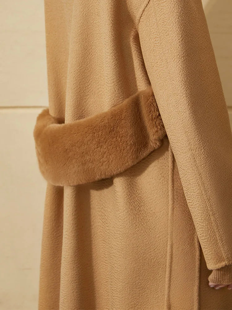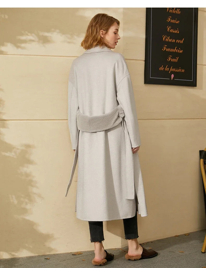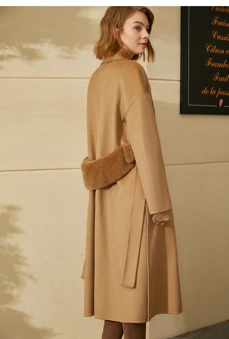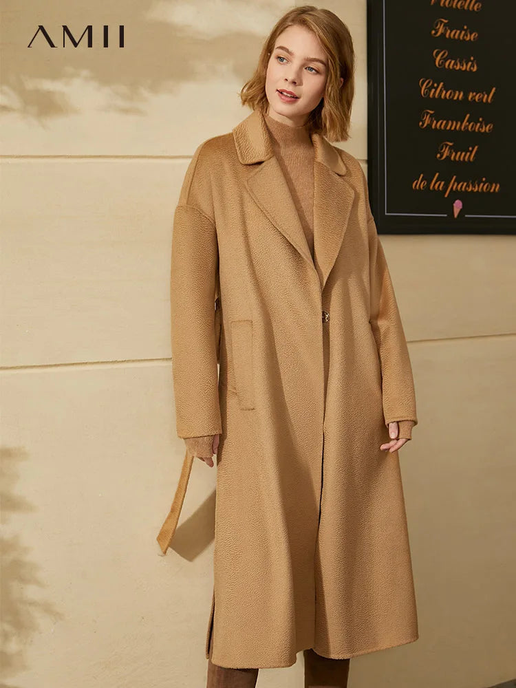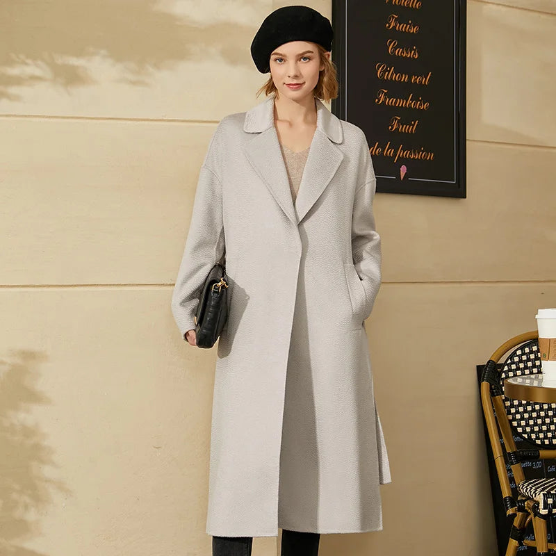 Damen Wintermantel aus 100 Prozent Wolle mit festem Revers und Knopfdekoration