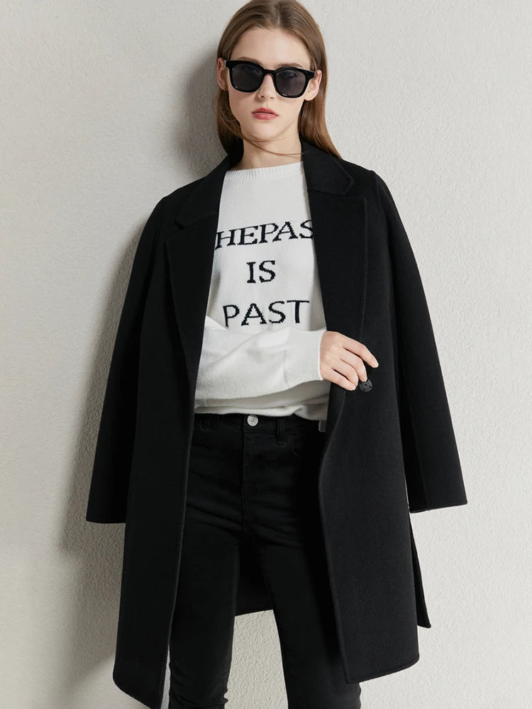 Damen Wollmantel im Minimalismus-Stil mit Umlegekragen für den Winter