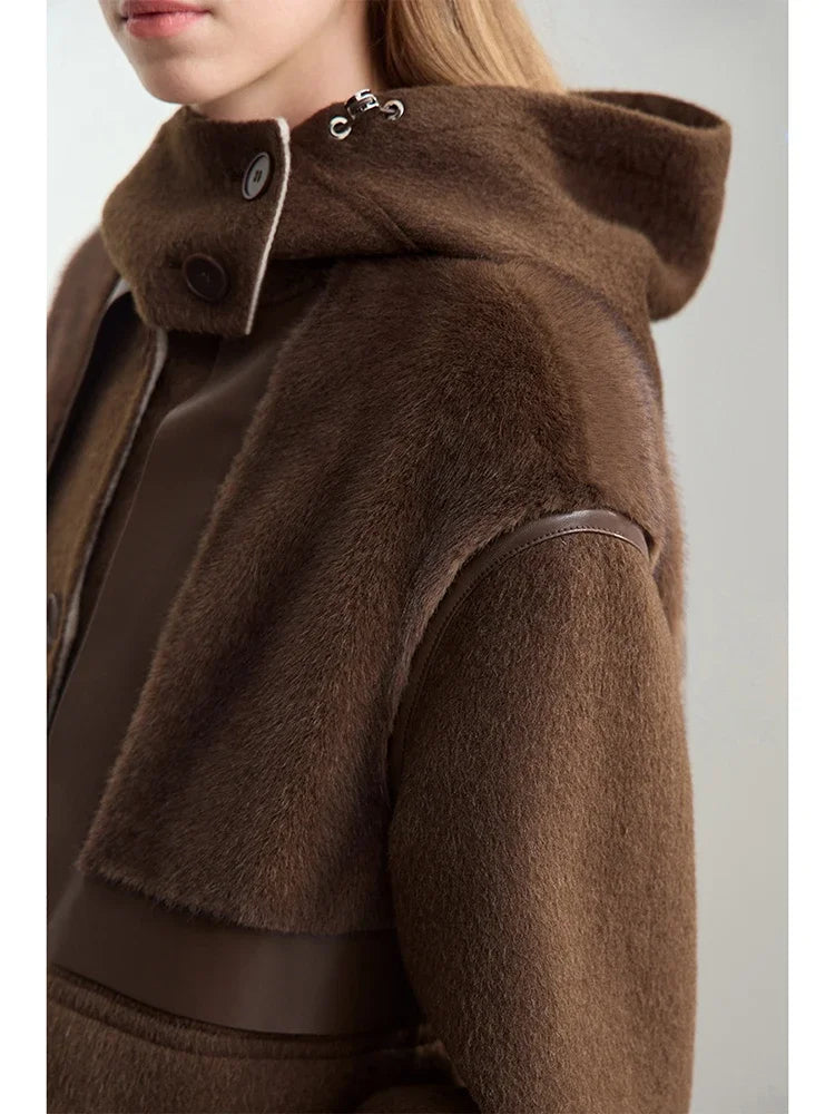 Damen Wintermantel mit Kapuze aus PU-Leder und Reißverschluss in verschiedenen Farben