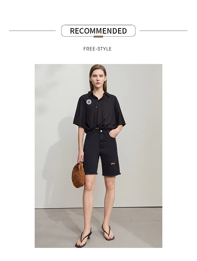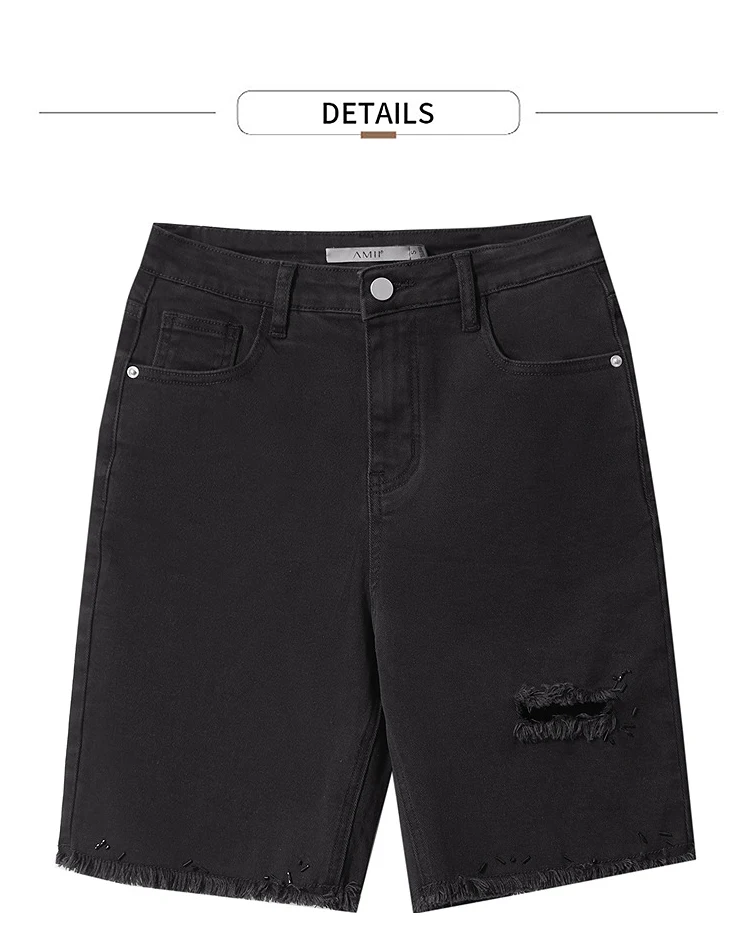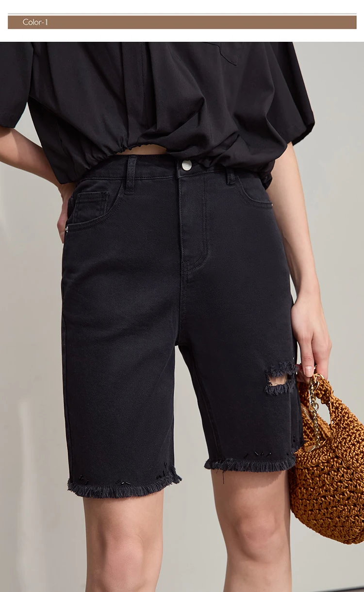 Damen Denim Shorts im minimalistischen Casual-Stil mit Zipper und Loch-Dekoration