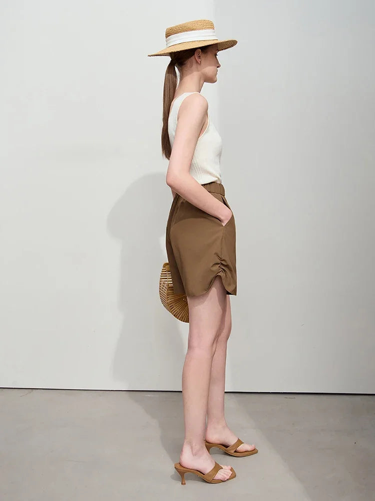Damen Freizeitshorts im minimalistischen Stil mit plissiertem Taschendesign