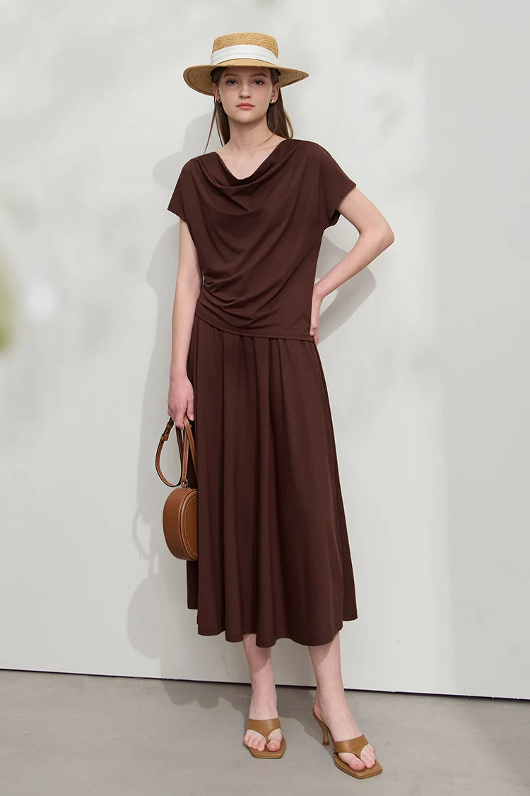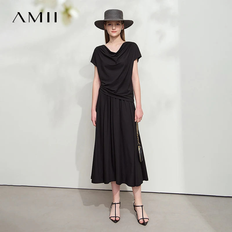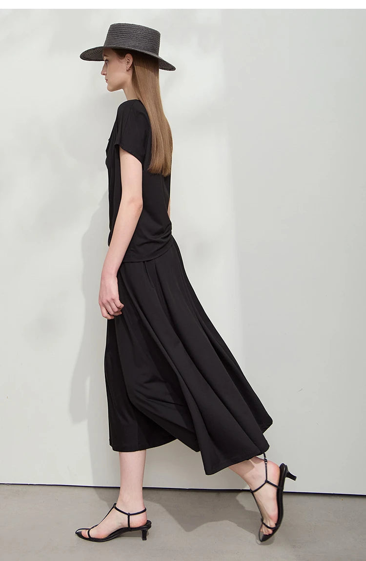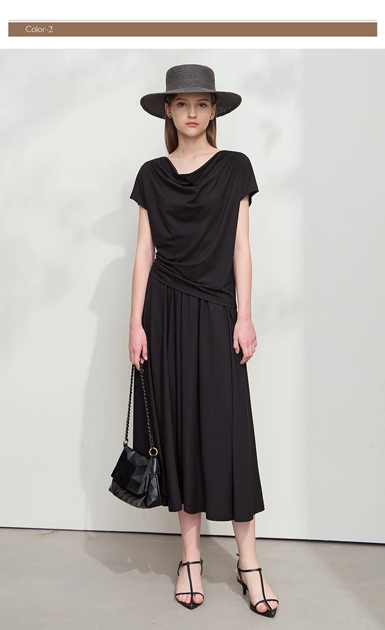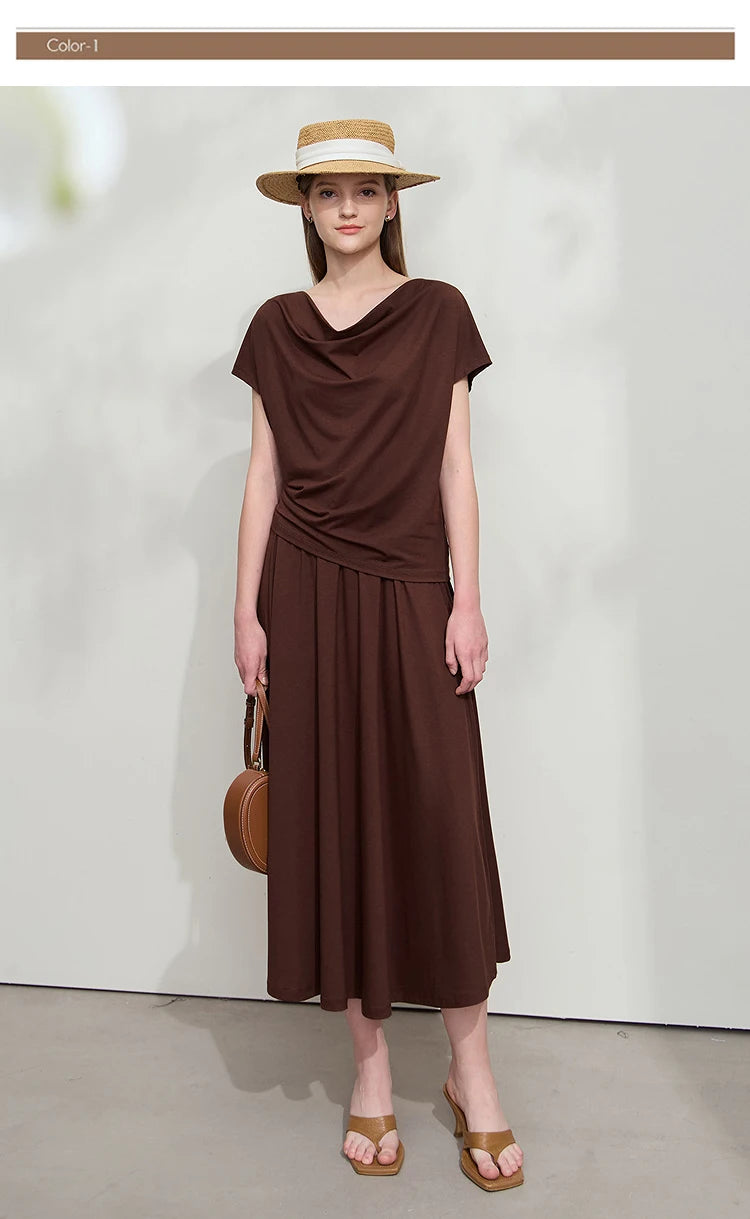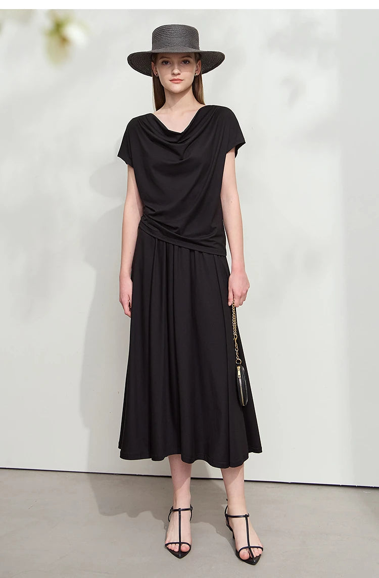 Damen T-Shirt-Rock Set mit solidem Swing-Kragen für den Sommer