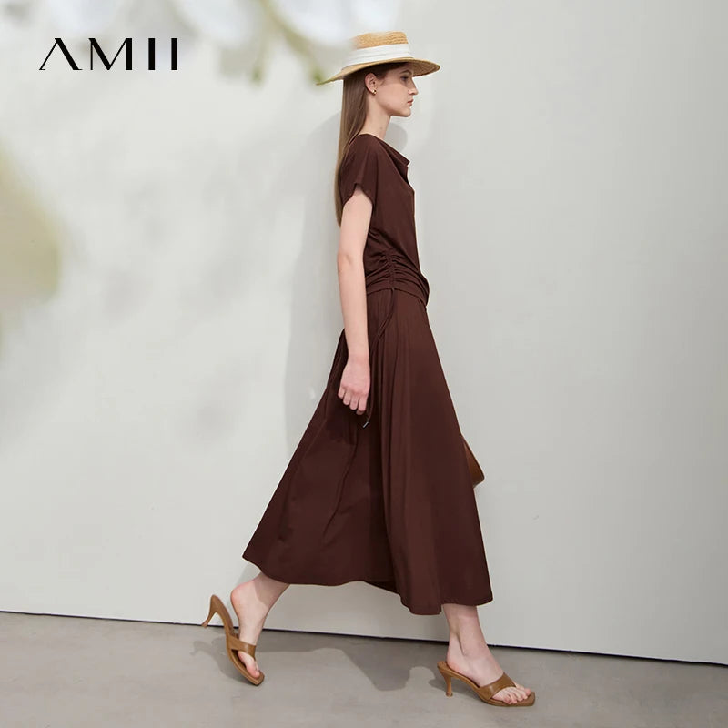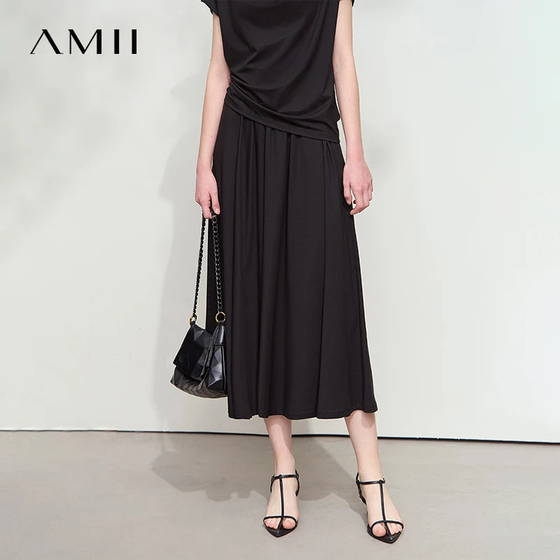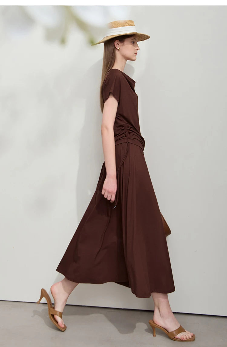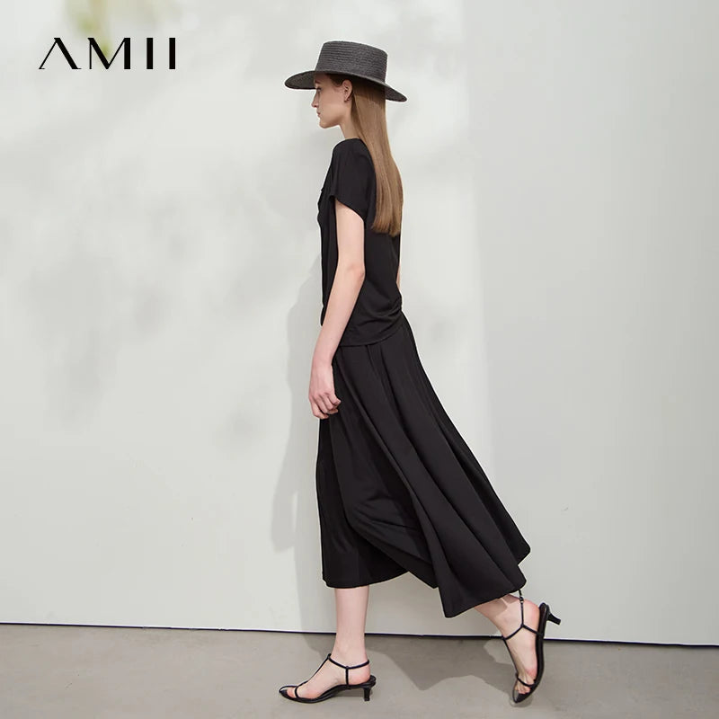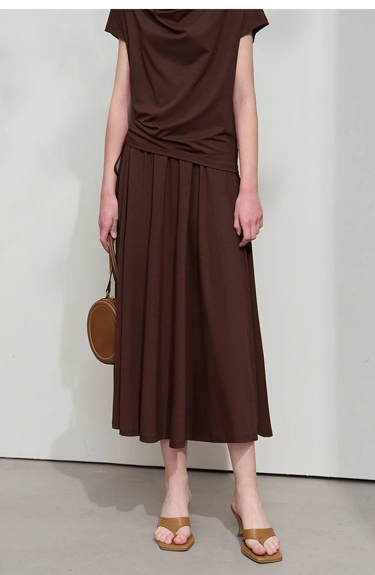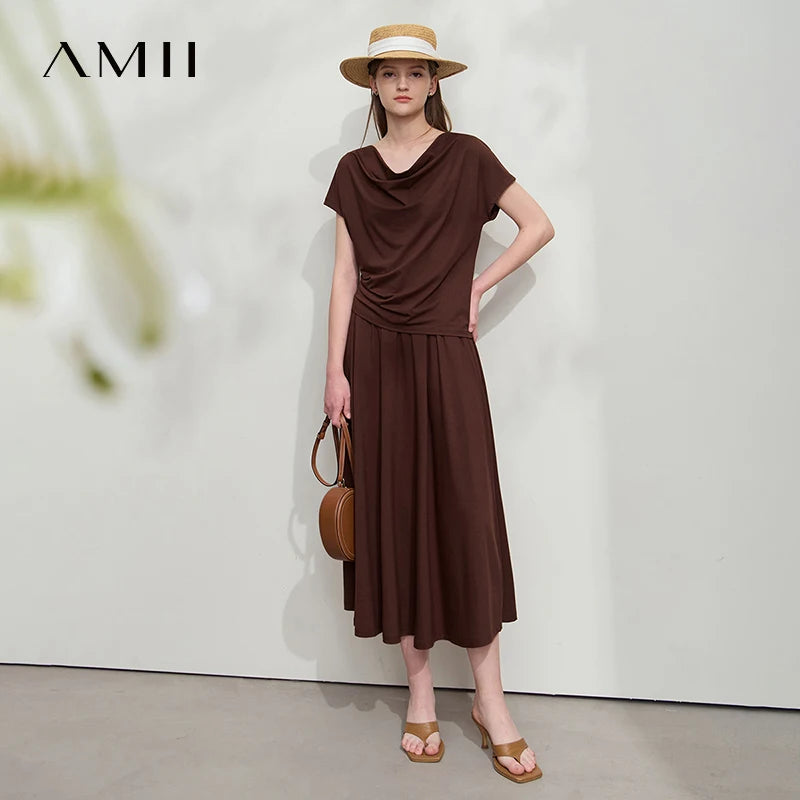 Damen T-Shirt-Rock Set mit solidem Swing-Kragen für den Sommer