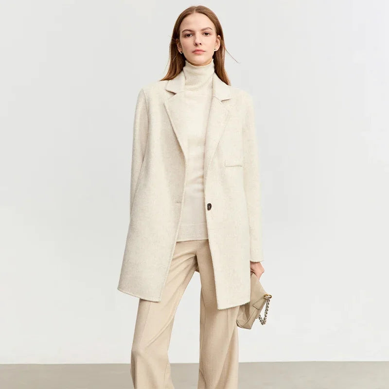 Damen Wollmantel im minimalistischen Old Money Stil mit Blazer-Kragen