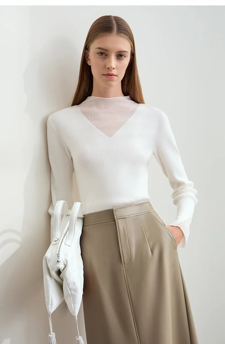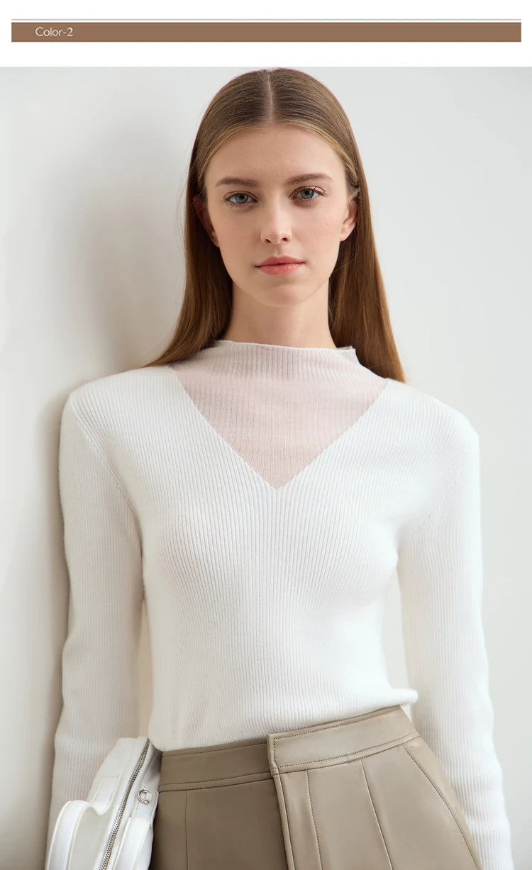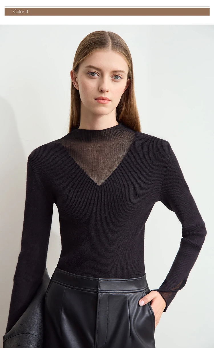 Damen Rollkragenpullover mit transparentem Panel aus der Winterkollektion 2024