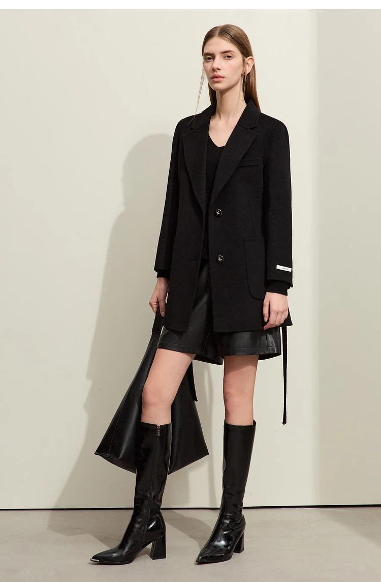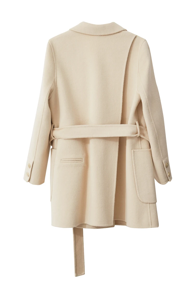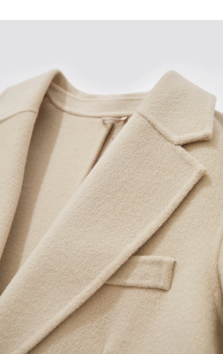 Damen Wollmantel im minimalistischen Stil mit Gürtel und langen Ärmeln