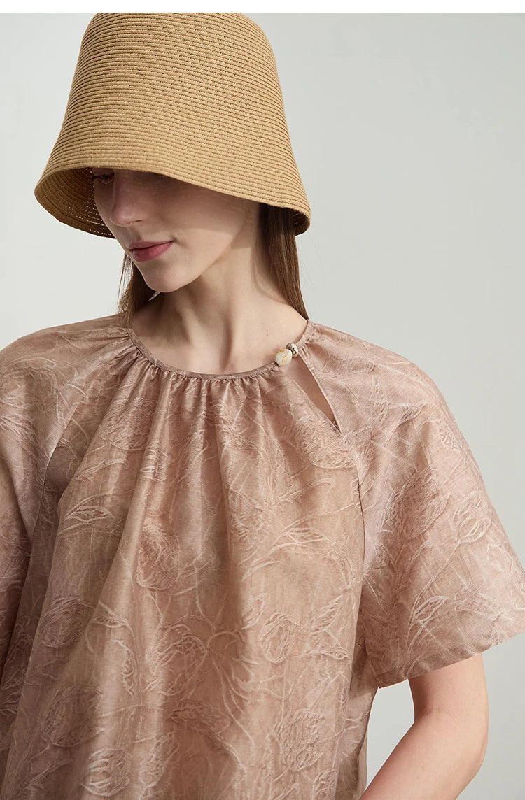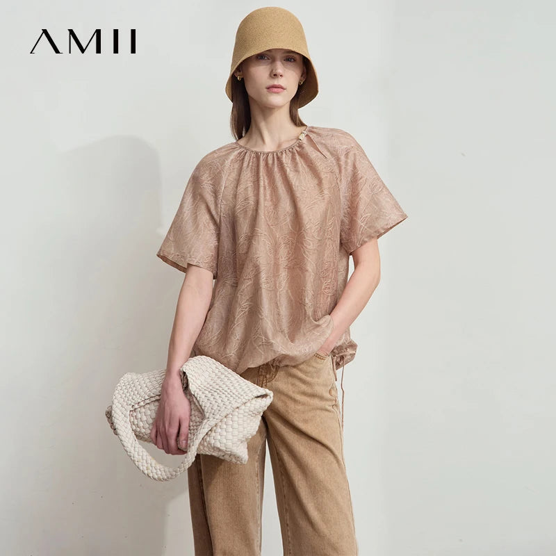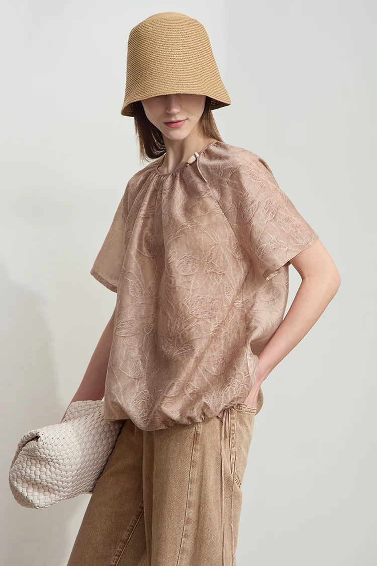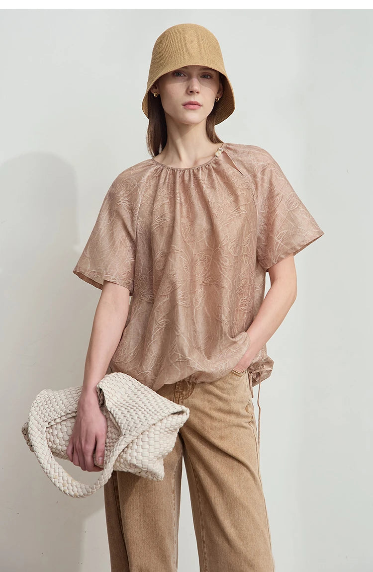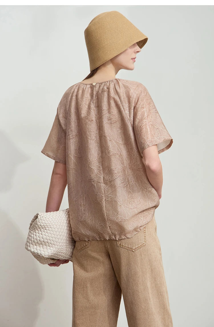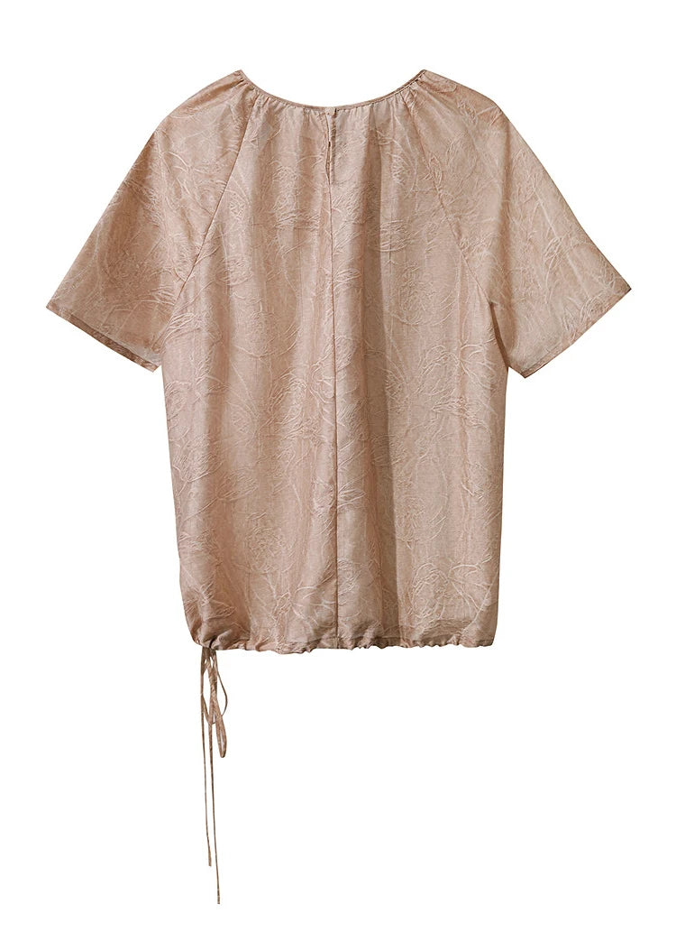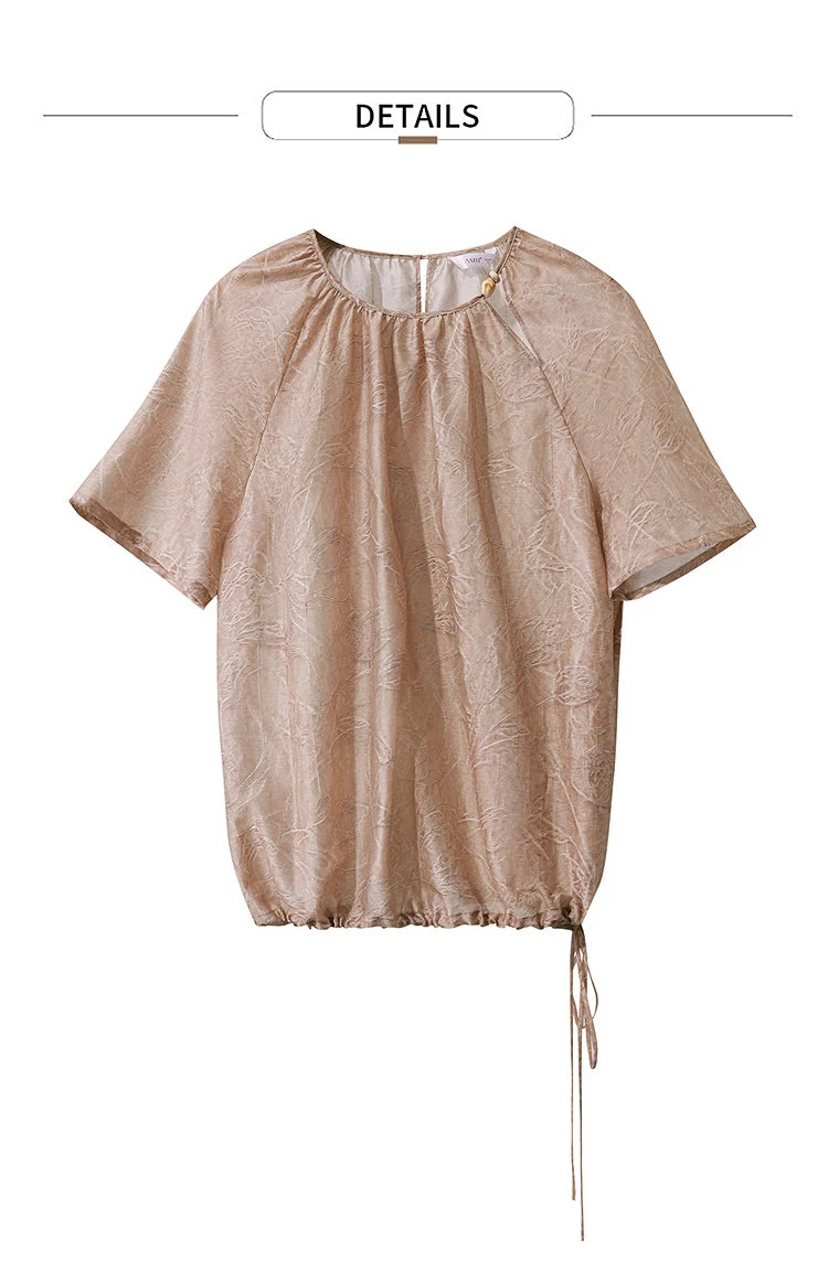 Damen T-Shirt im minimalistischen Sommer-Stil mit Kordelzug und Rundhalsausschnitt