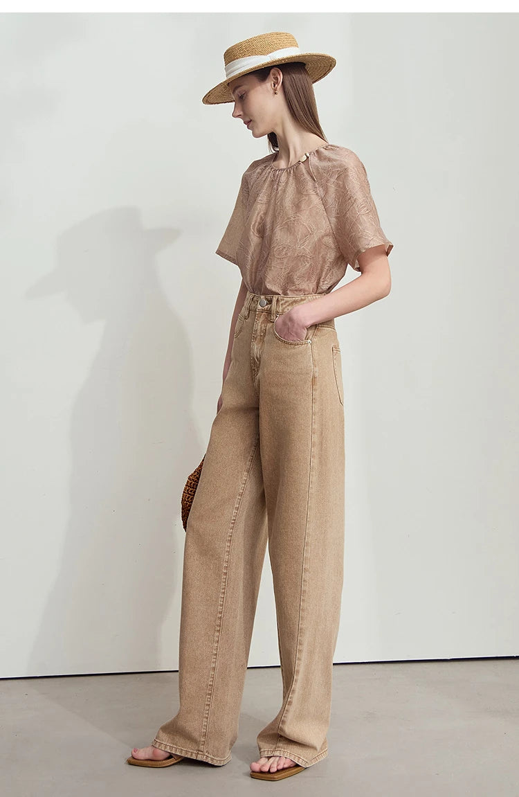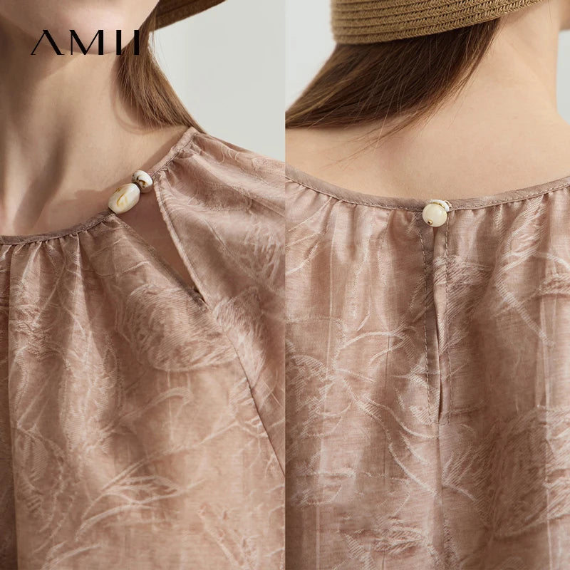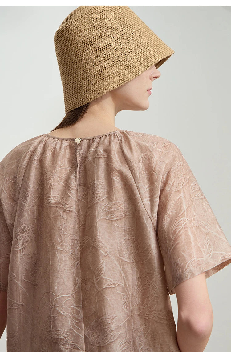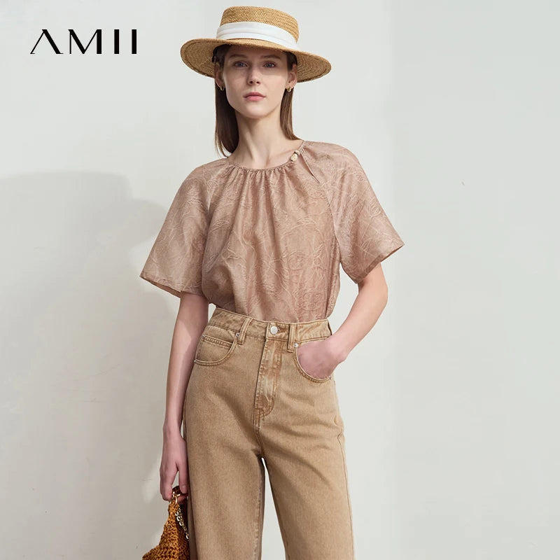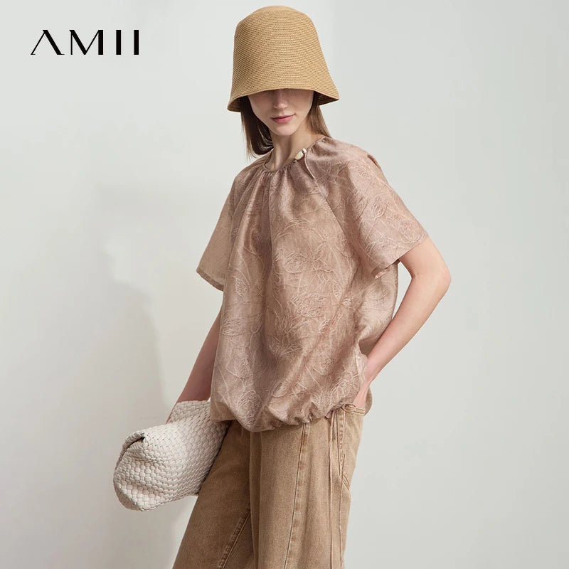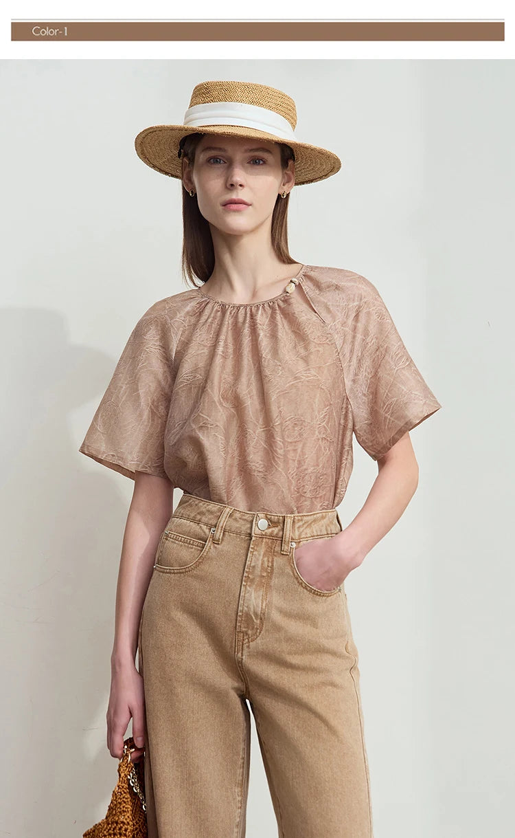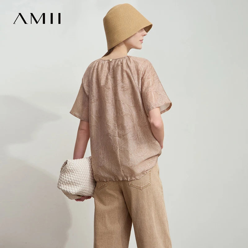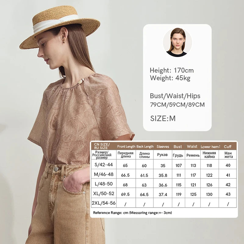 Damen T-Shirt im minimalistischen Sommer-Stil mit Kordelzug und Rundhalsausschnitt