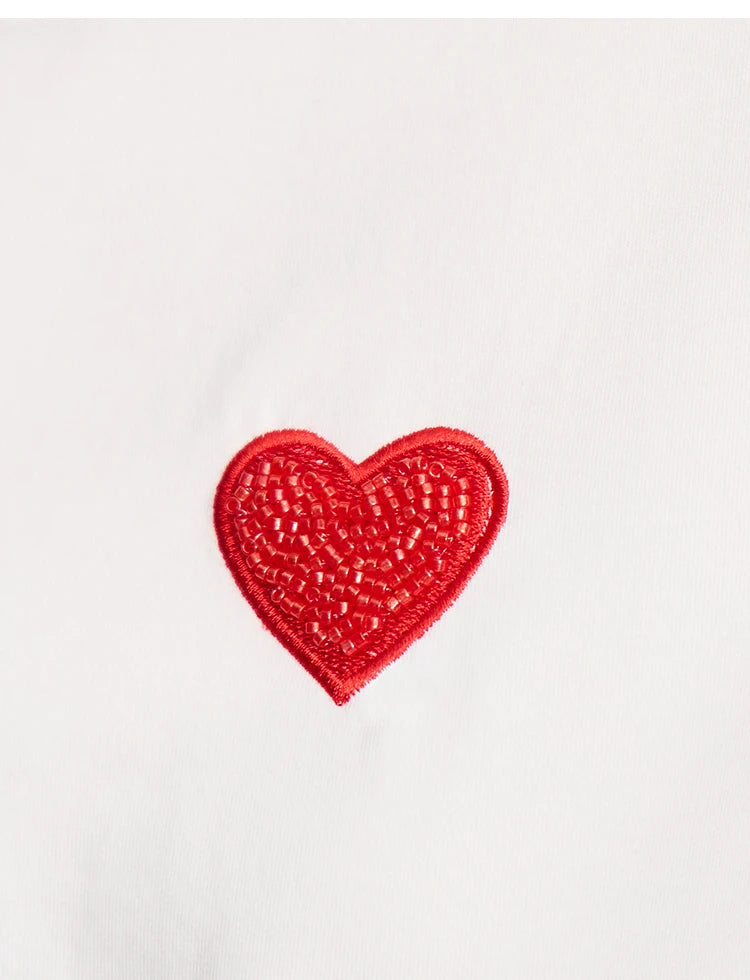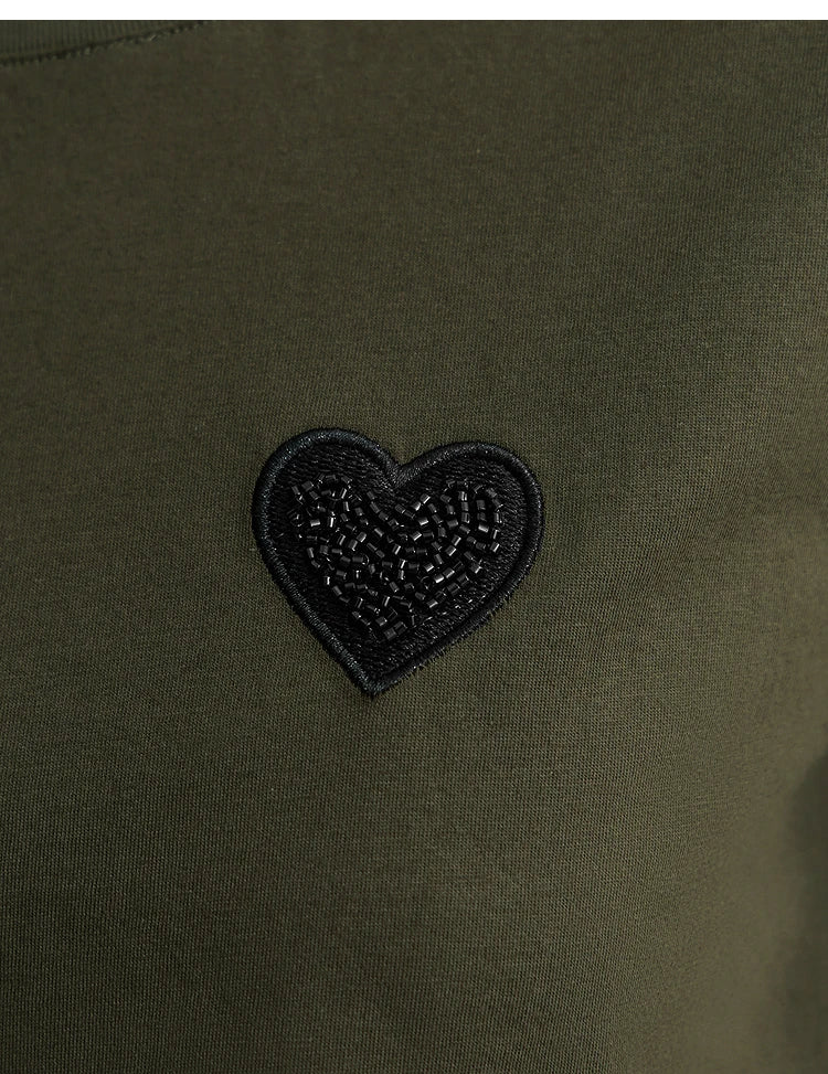 Damen T-Shirt im minimalistischen Stil mit bestickten Liebesperlen für den Sommer