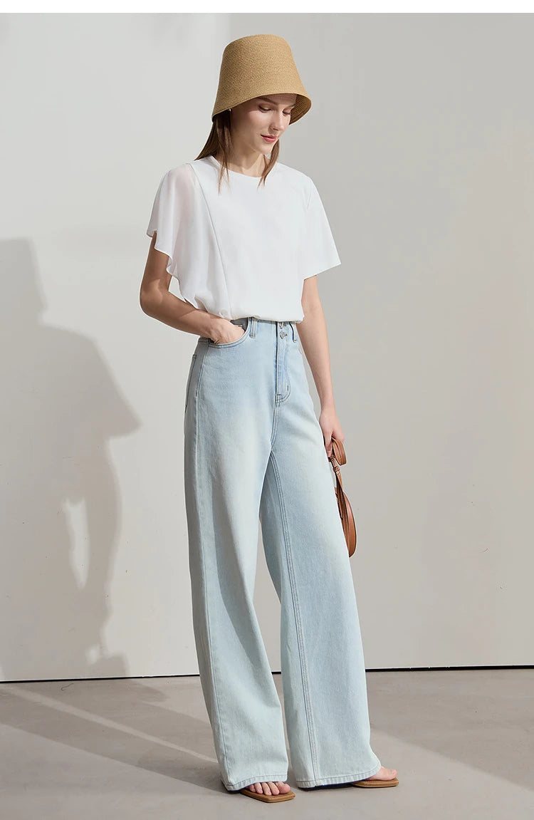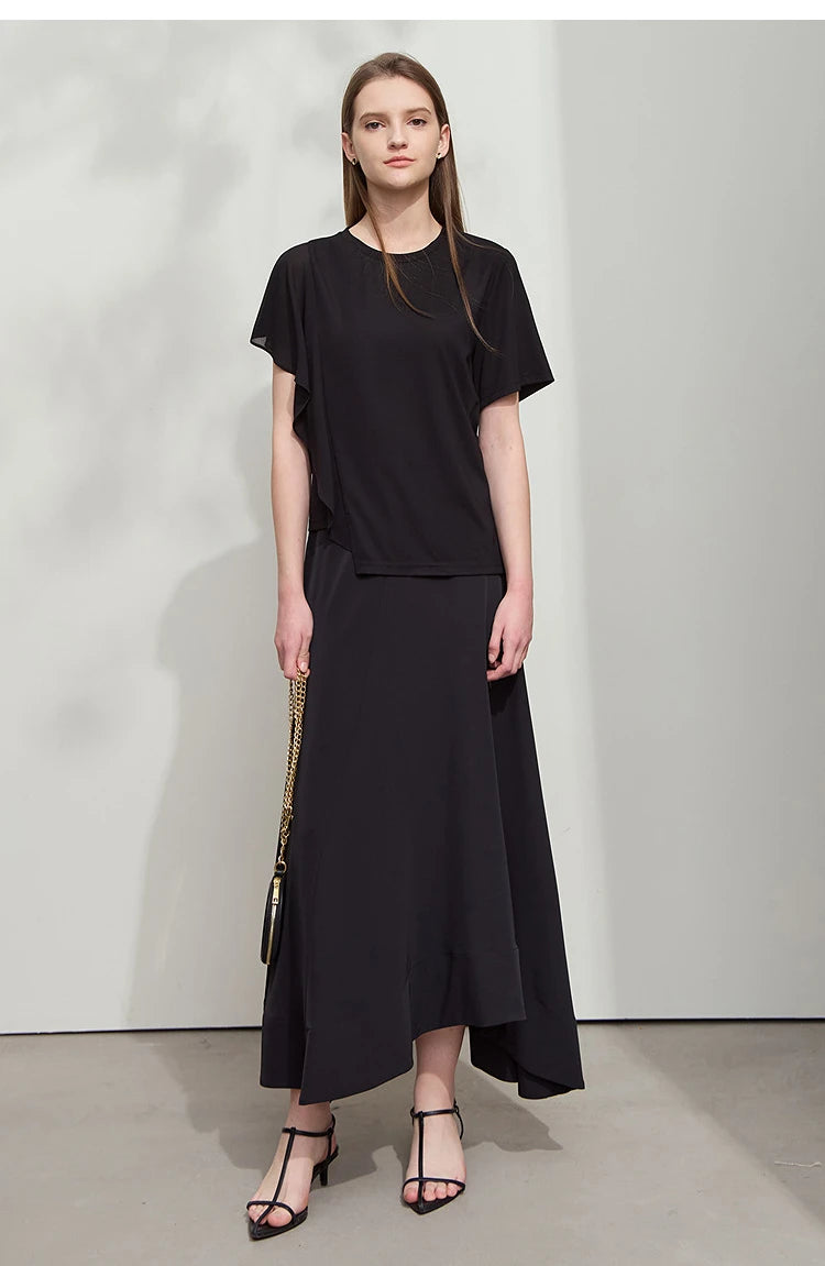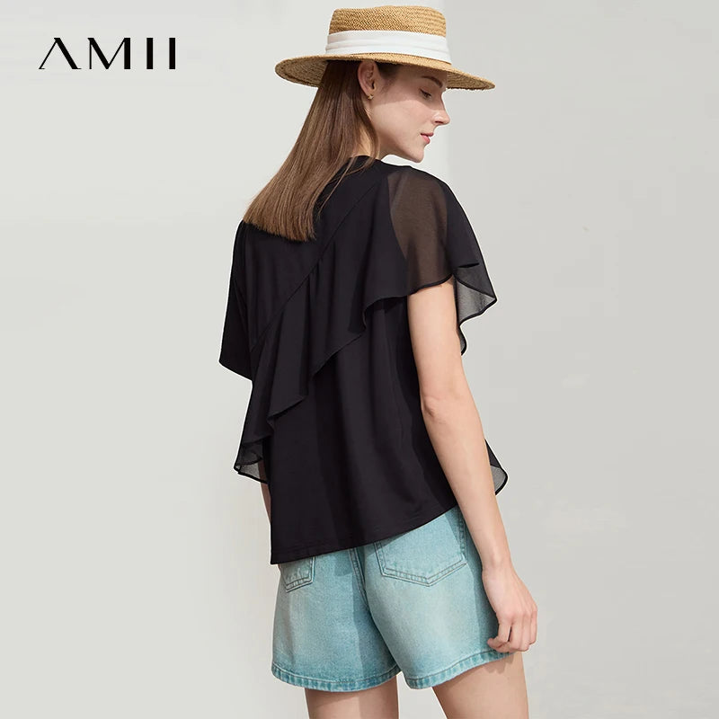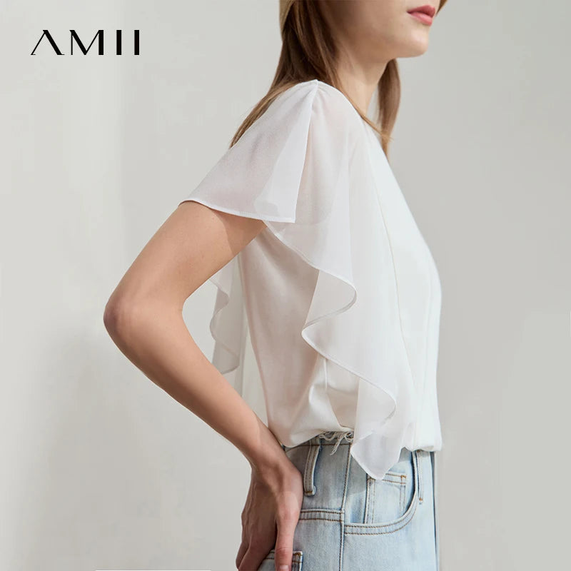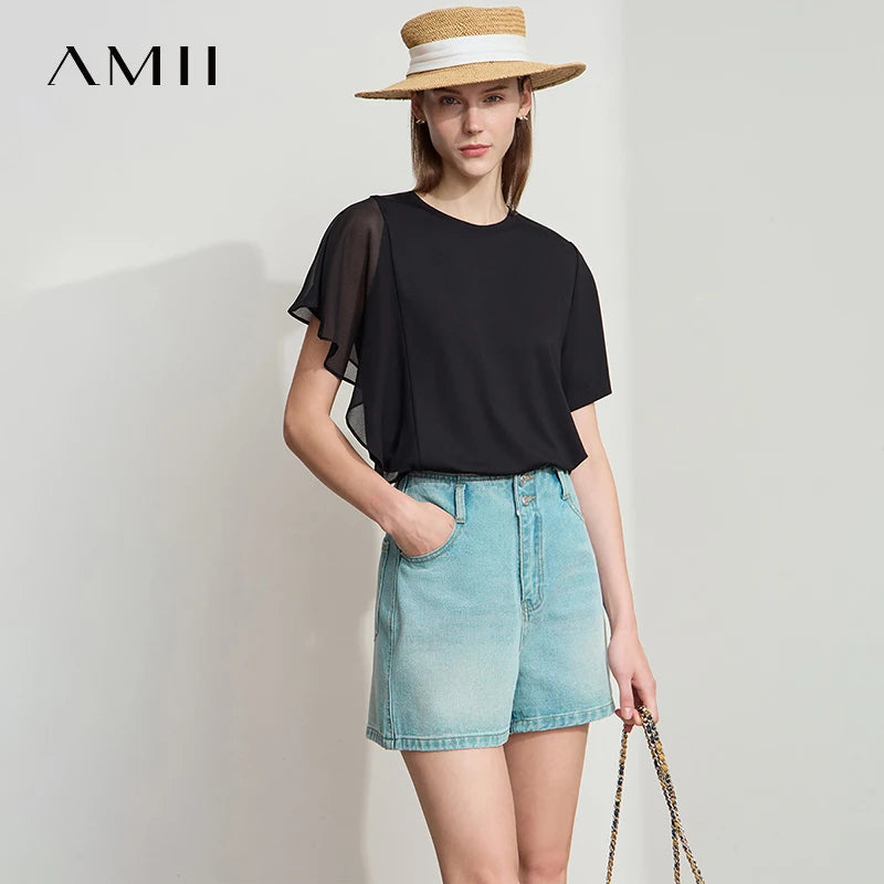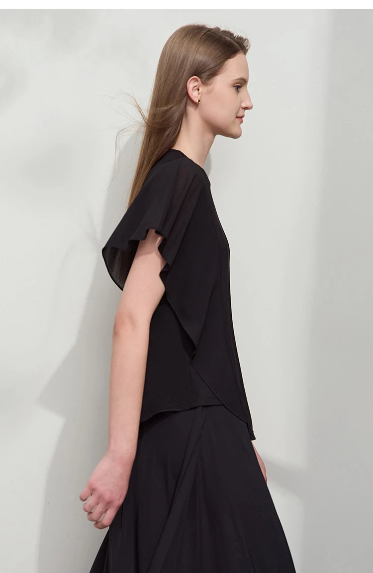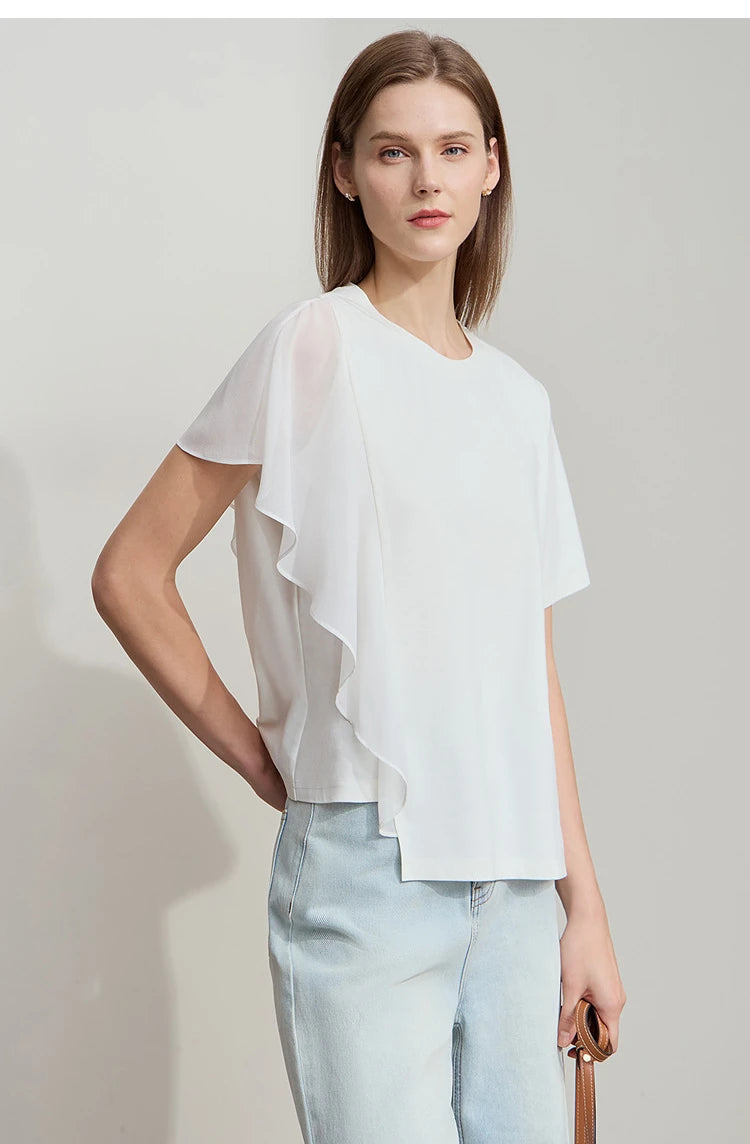 Damen Sommer-T-Shirt mit kurzen Schmetterlingsärmeln und Rundhalsausschnitt