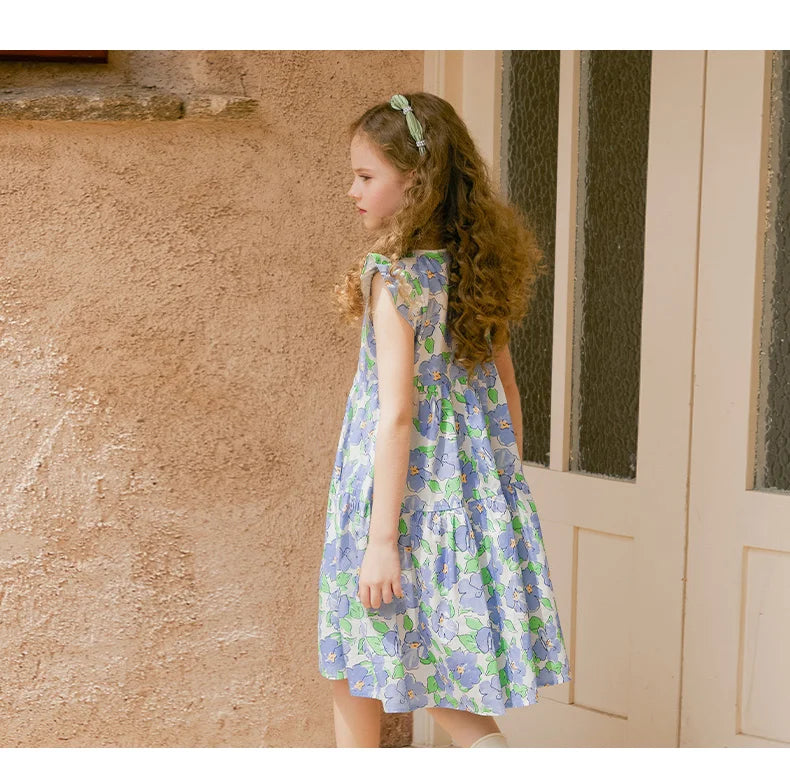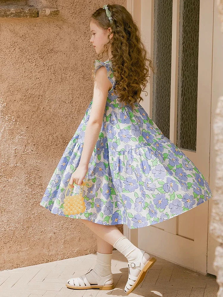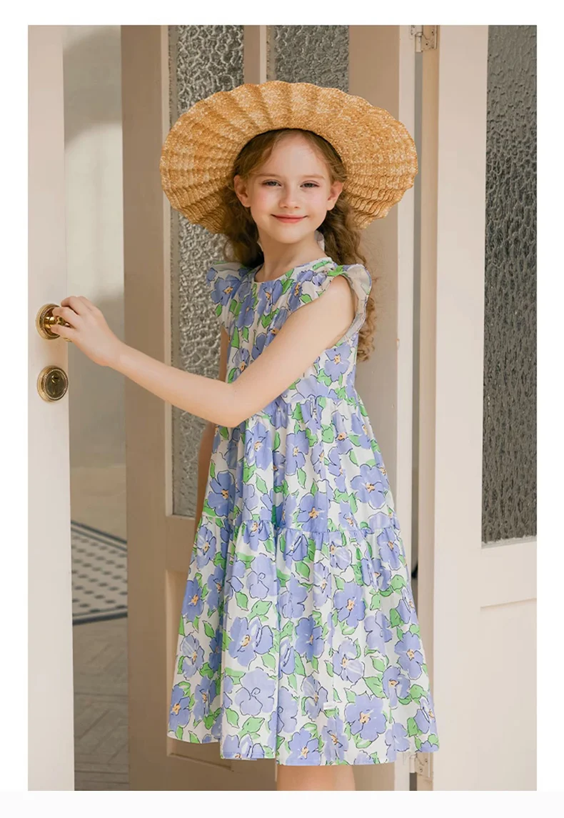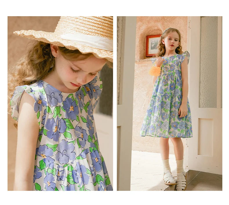Langärmliges Prinzessinnenkleid aus Gaze in Tiefblau und Rot für Mädchen – Perfekt für Geburtstagsfeiern und Hochzeiten (3-14 Jahre)