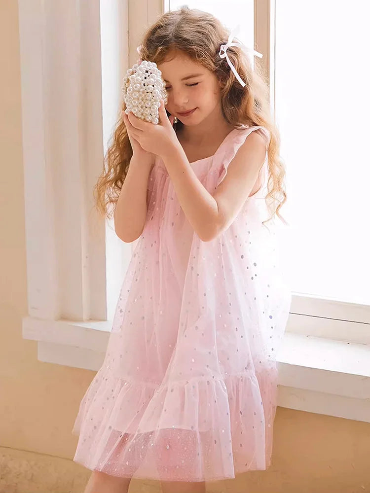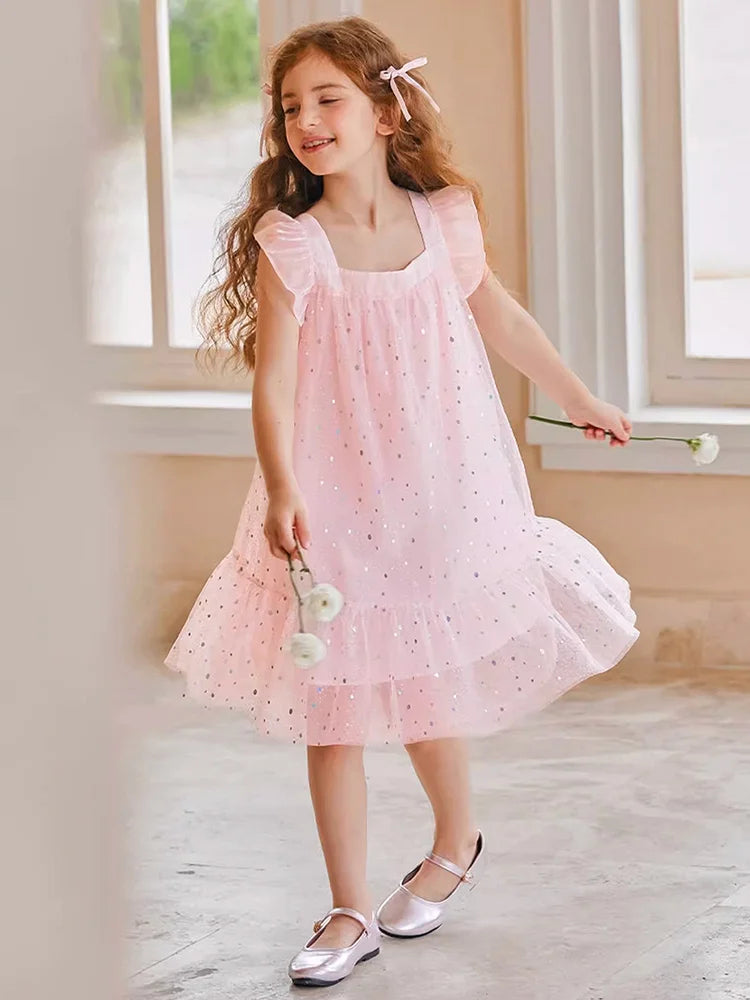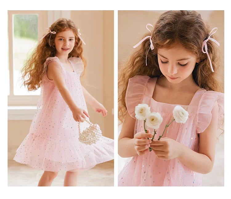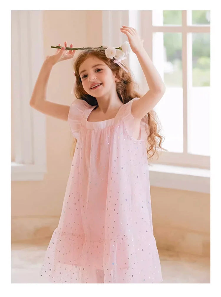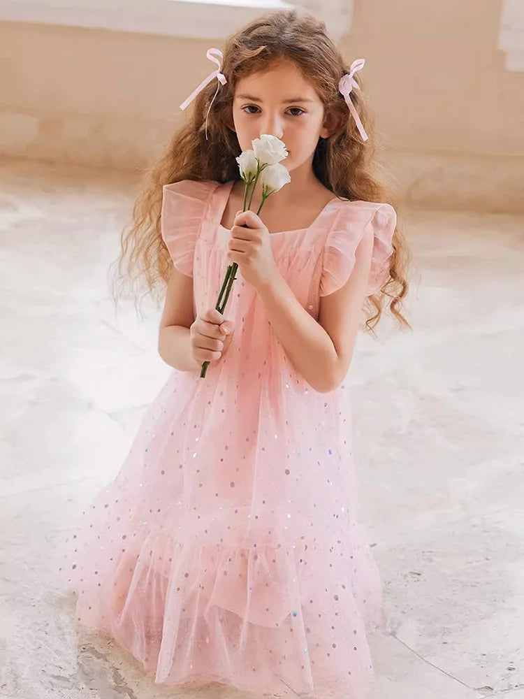 Rosa Prinzessinnen-Kleid für Mädchen mit Pailletten und Gaze – Sommerliches Partykleid für Kinder von 3 bis 12 Jahren