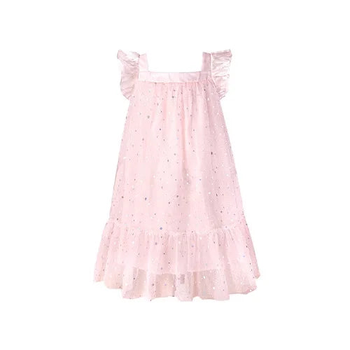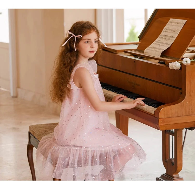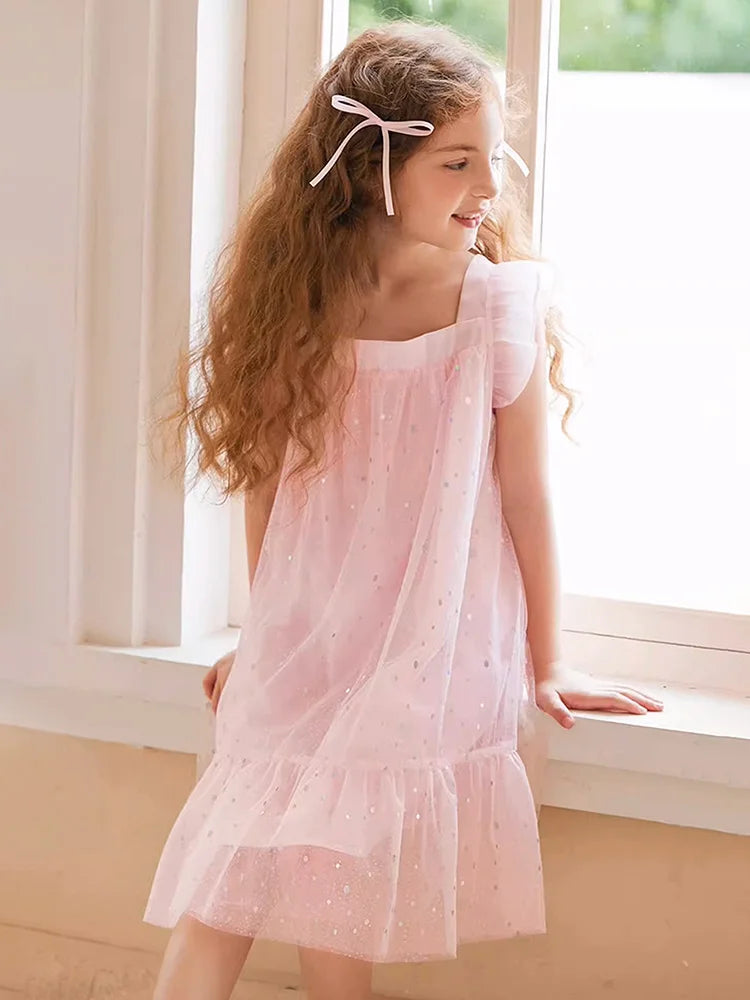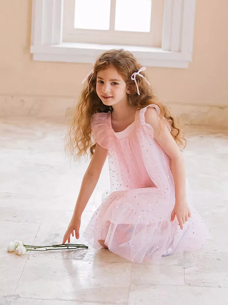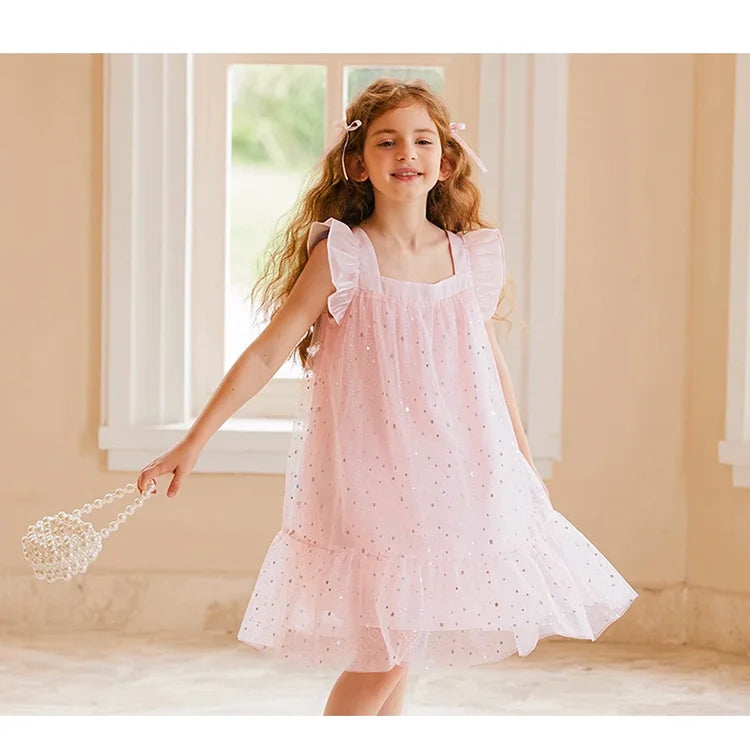 Rosa Prinzessinnen-Kleid für Mädchen mit Pailletten und Gaze – Sommerliches Partykleid für Kinder von 3 bis 12 Jahren