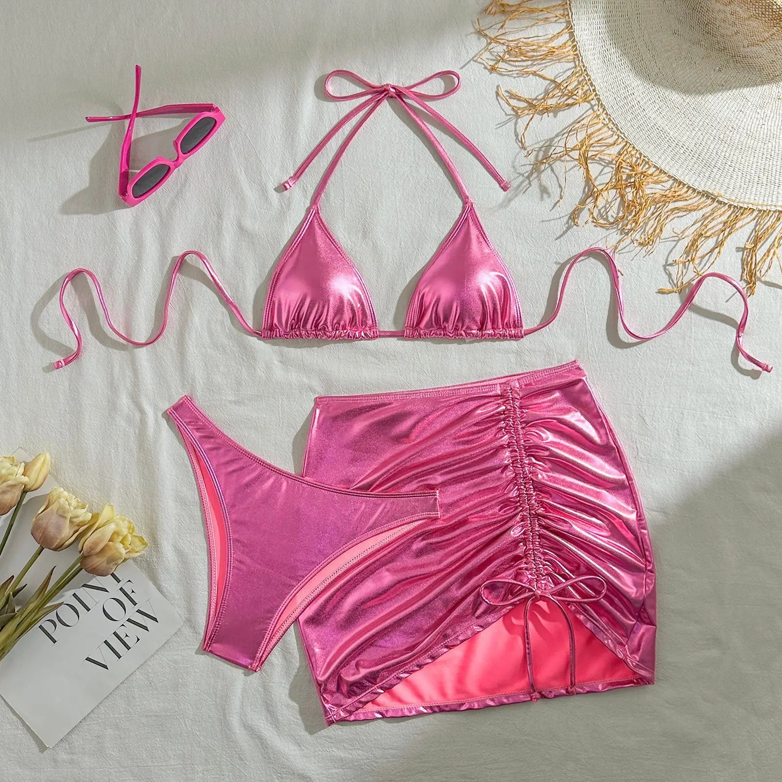 Push-Up-Bikini mit Strasssteinen und passendem Stirnband – ideal für Strand und Pool