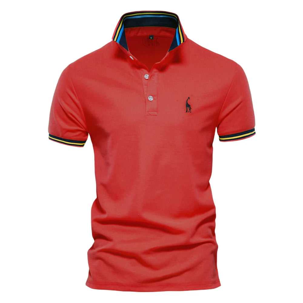 Herren Polo Shirt aus Baumwolle mit fester Hirsch-Stickerei und Kurzarm