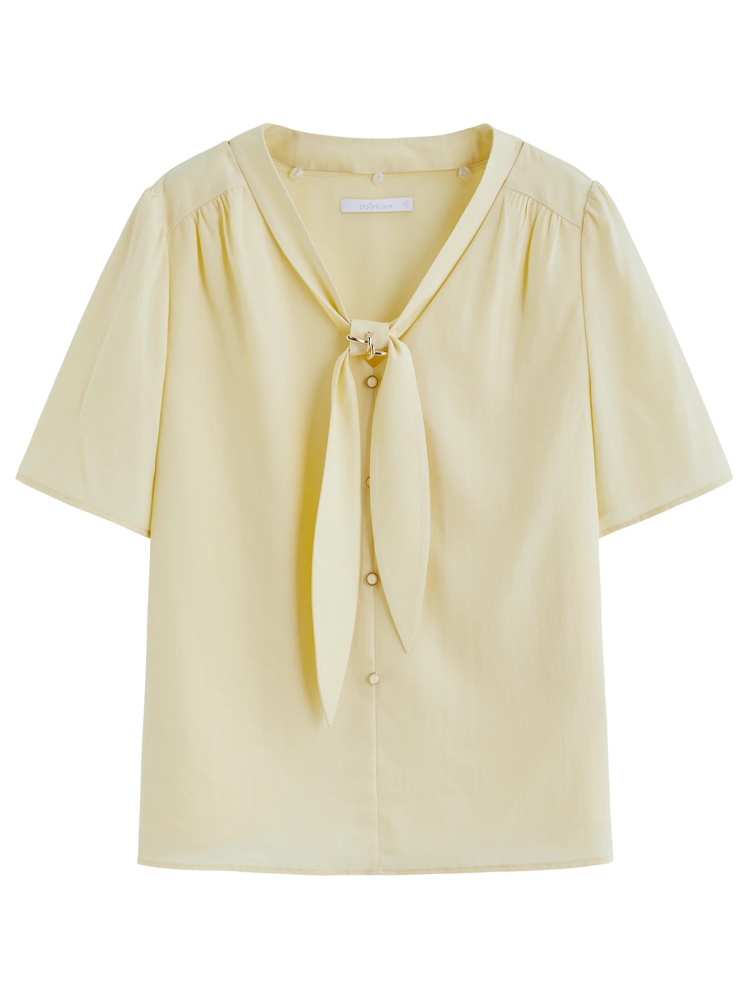 Damenbluse mit V-Ausschnitt, einreihig, langärmelig, schwarz, mit Taillenband – ideal für das Büro im Herbst