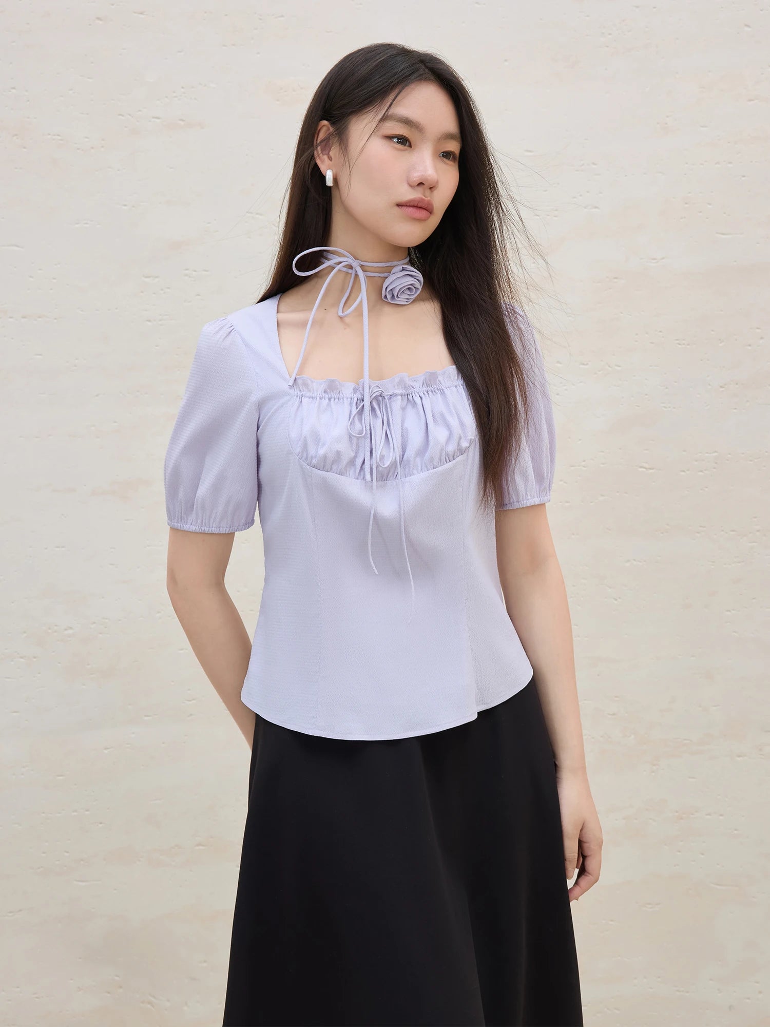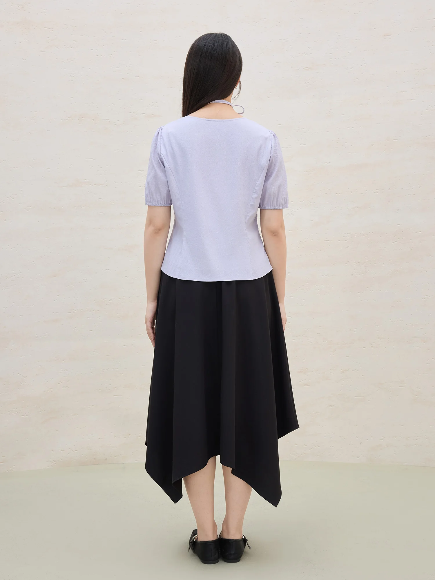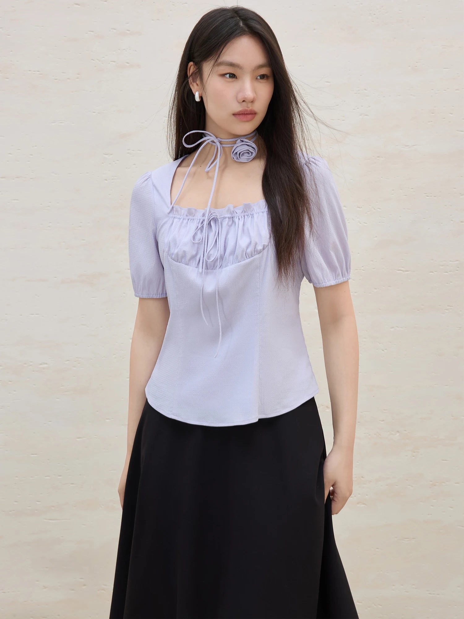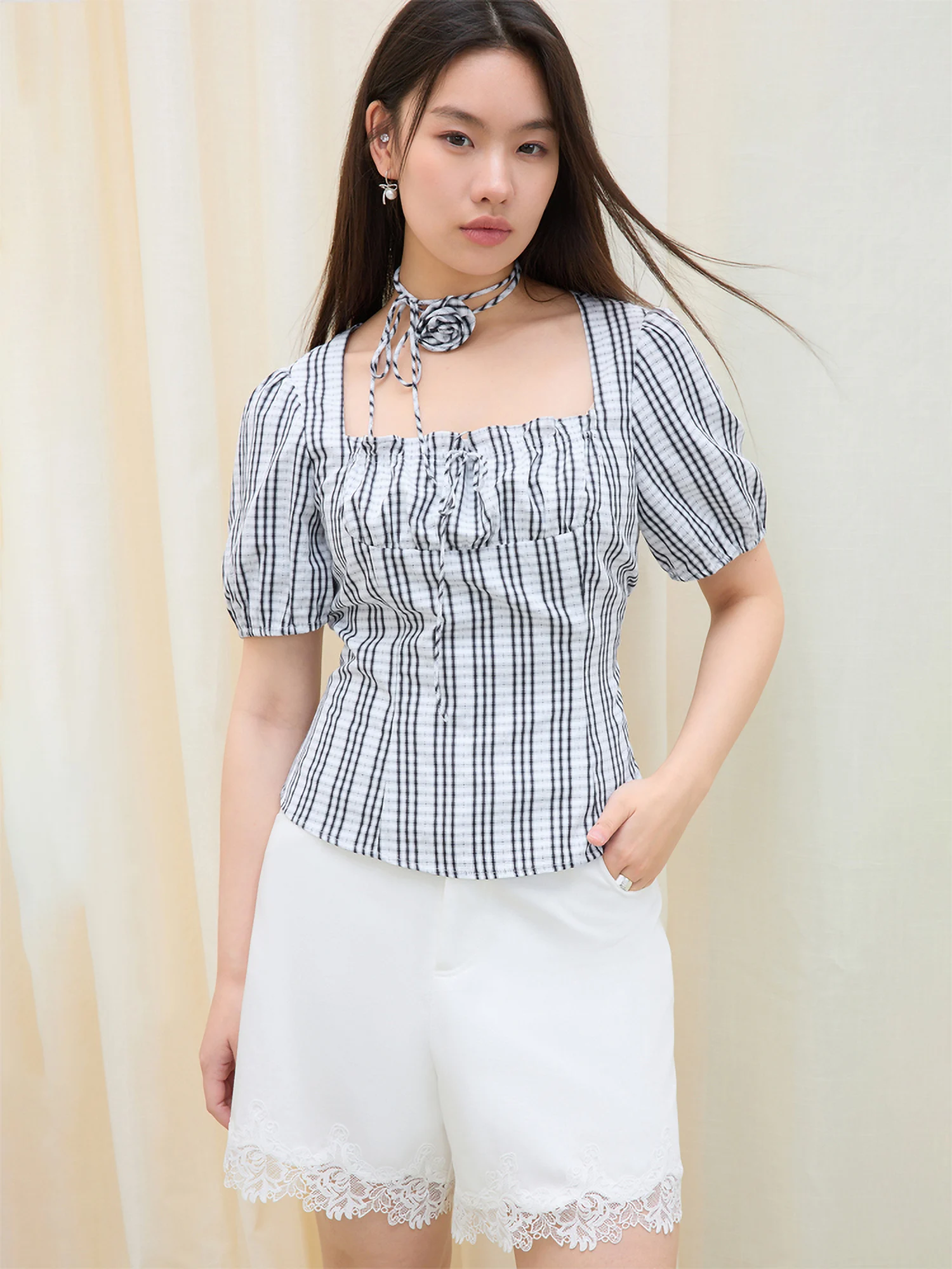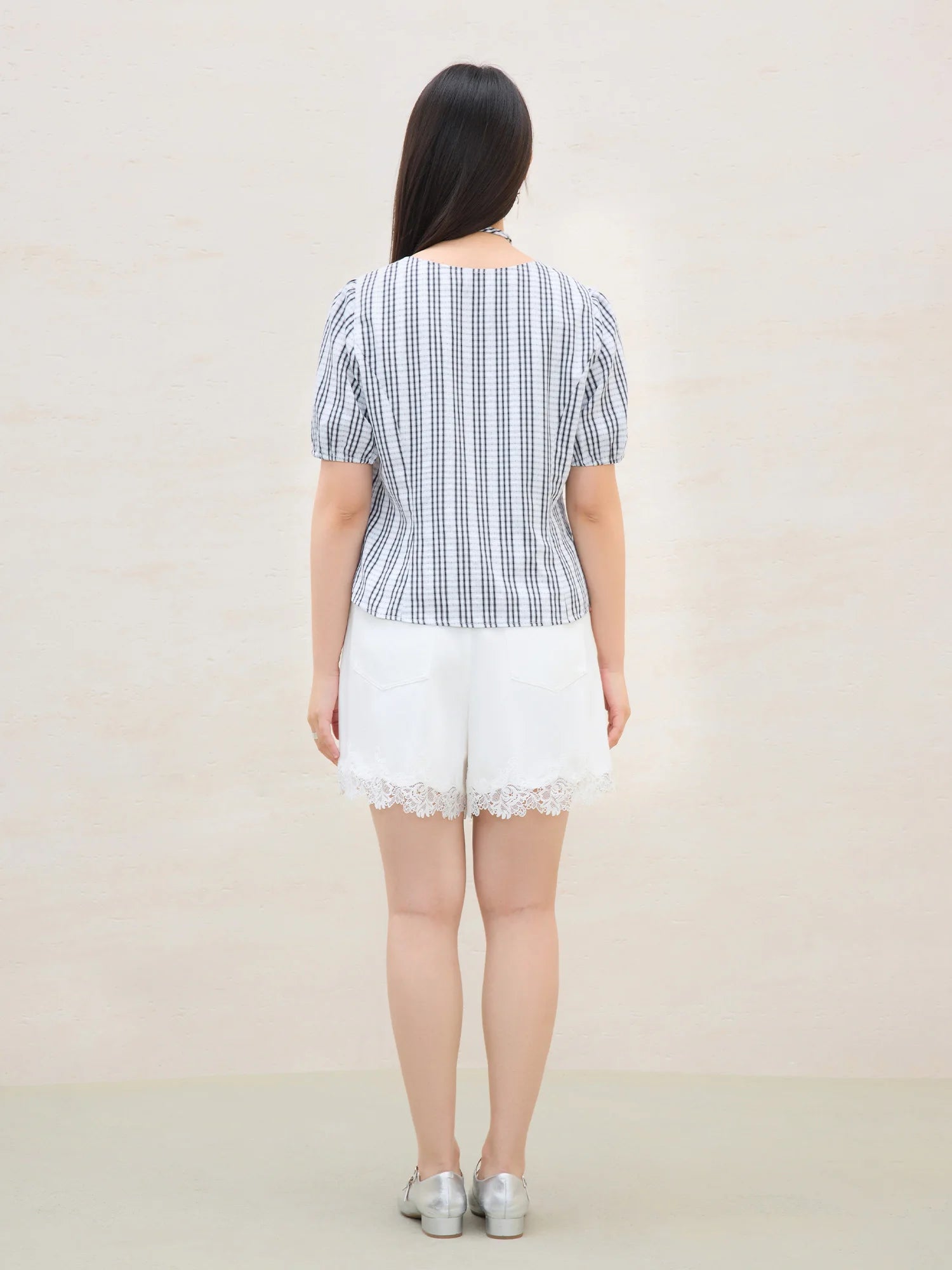 Kurzärmeliges Damen-Shirt im maritimen Stil mit Kontrastkragen – figurbetont und vielseitig kombinierbar