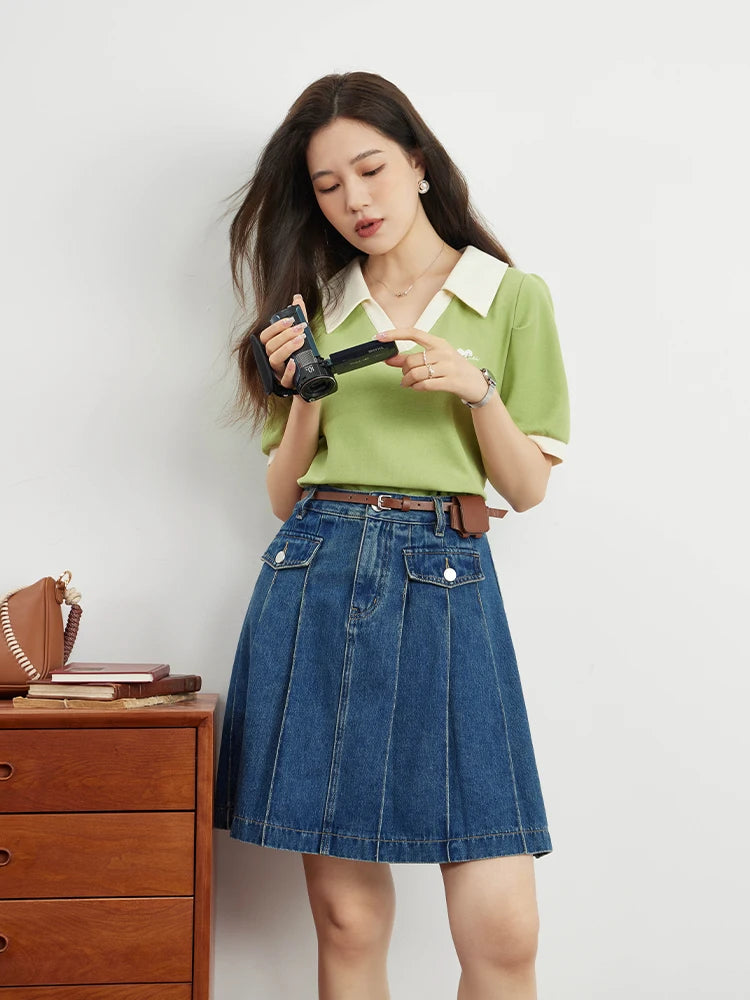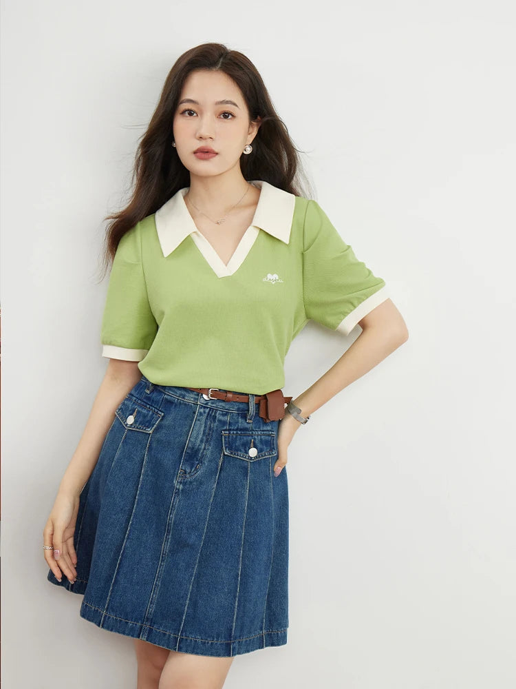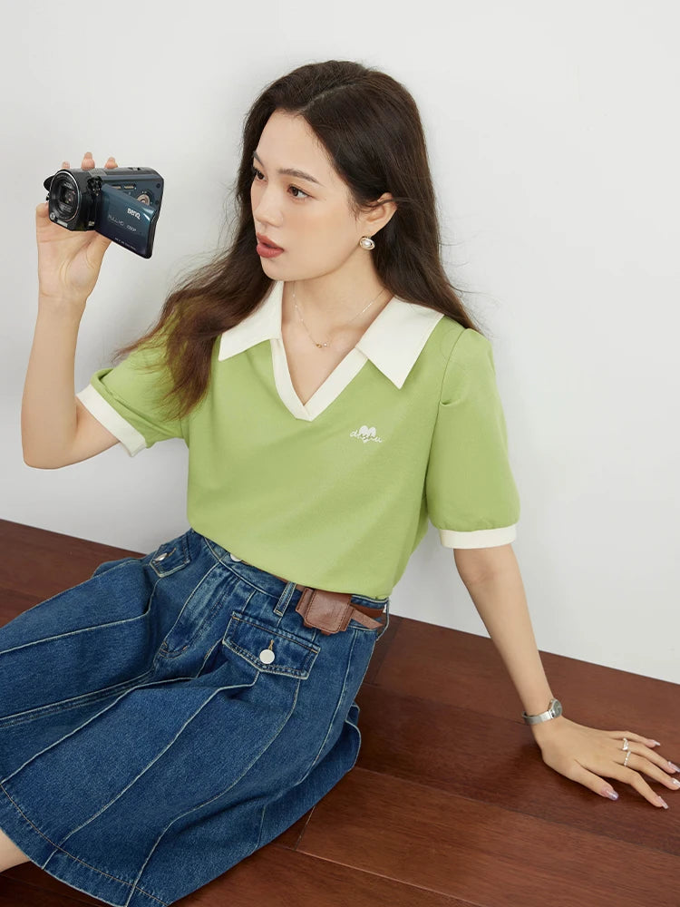 Kurzärmeliges Retro-Karohemd in Übergröße mit Lyocell-Spitzenbesatz – stilvoll und chic für den Sommer