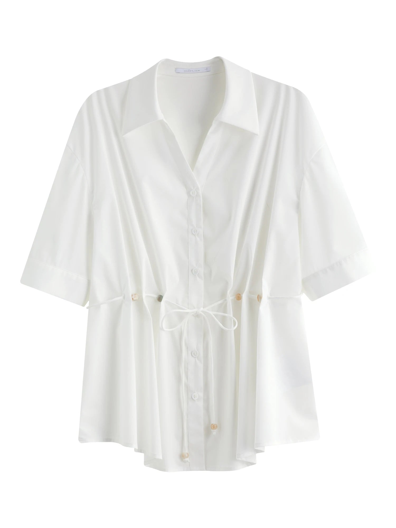 Gestreifte Damenbluse mit langen Ärmeln und Wickeldesign aus Baumwolle – Slim Fit mit Polokragen