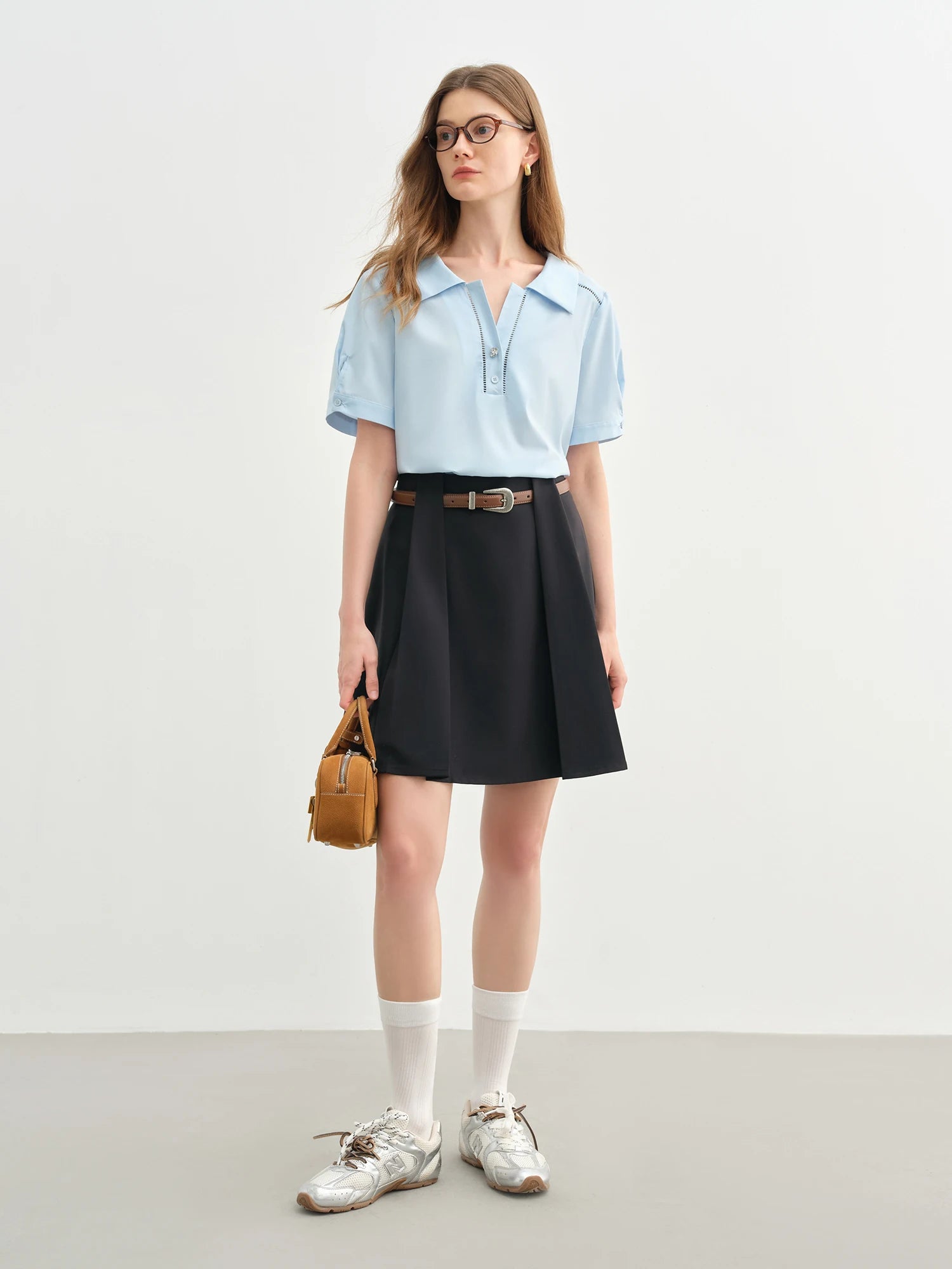 Eleganter Damen-Wollpullover mit schrägem Kragen und Schlitz – vielseitig und schick für den Frühling