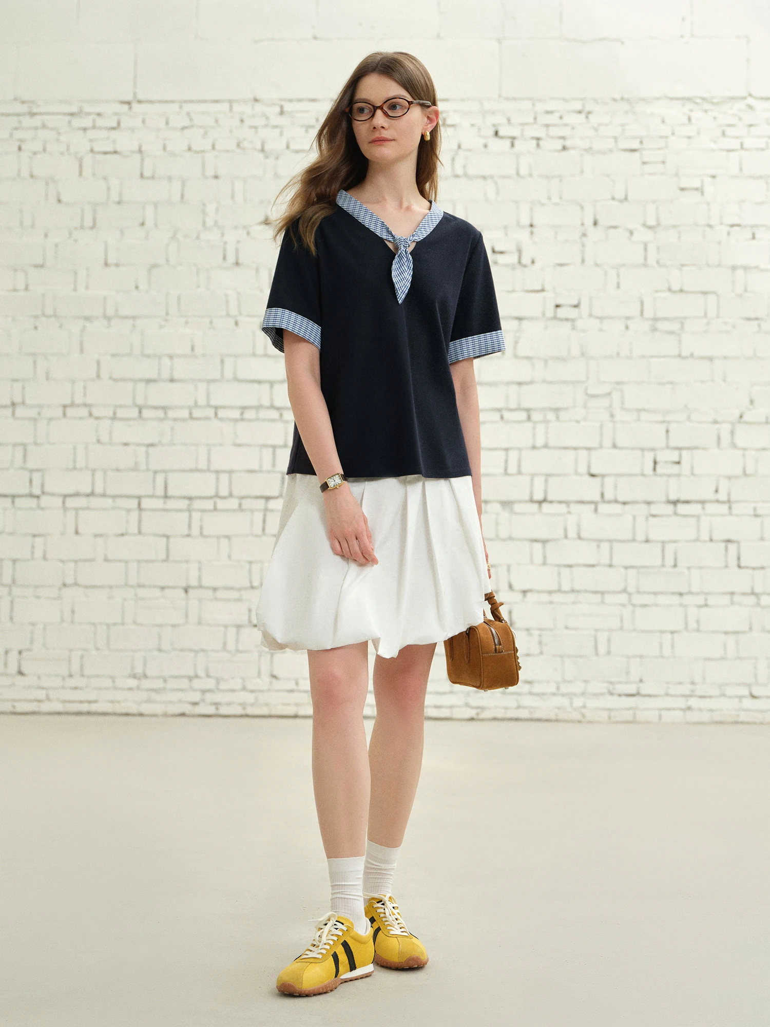 Ärmelloses Damen-Top aus reiner Baumwolle mit Wellenmuster und Perlendetails – atmungsaktiv und elegant in Blau