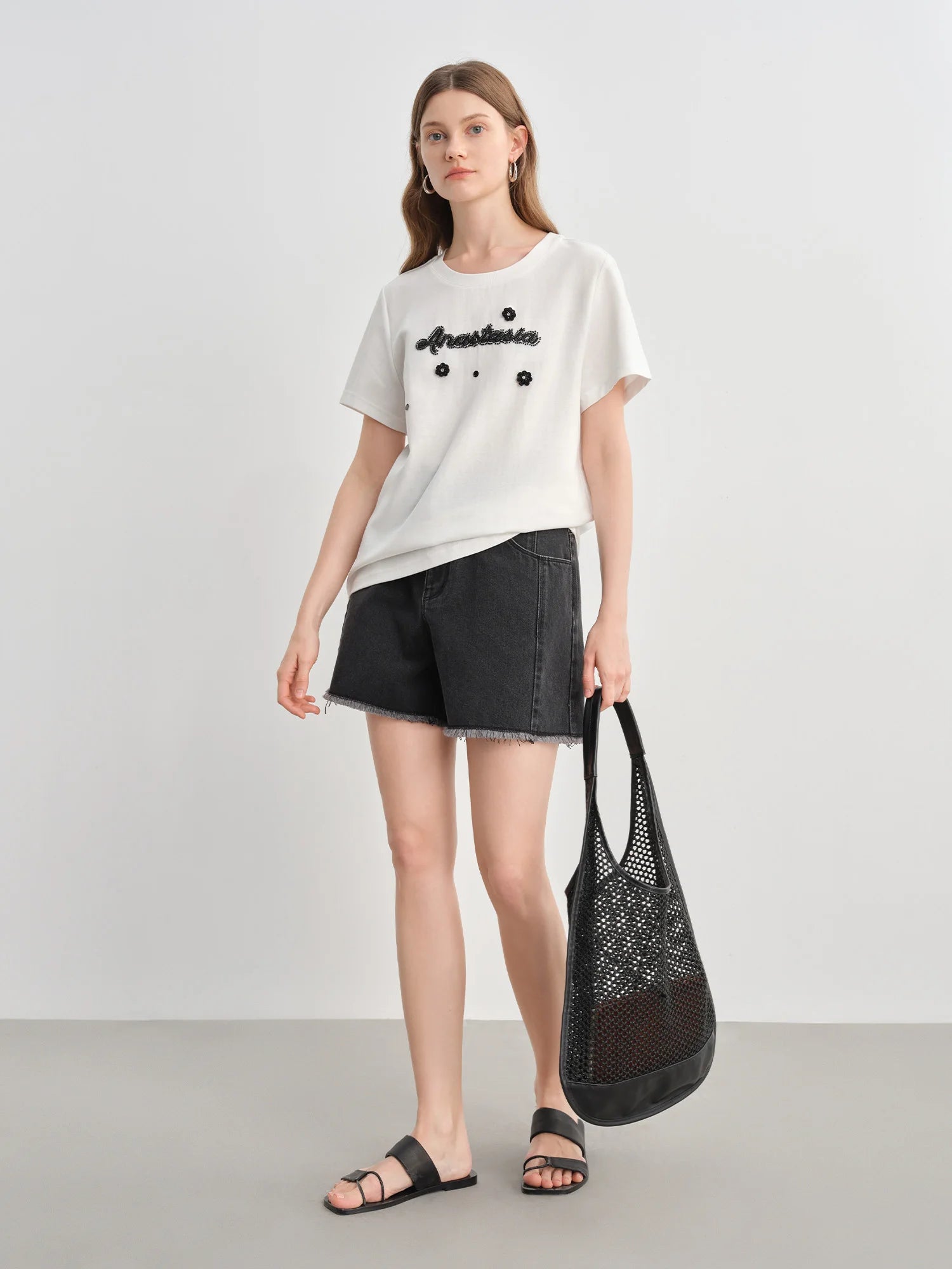 Damen T-Shirt mit V-Ausschnitt und strukturierten Schultern im Retro-Twist-Knotendesign für eine schlanke Silhouette
